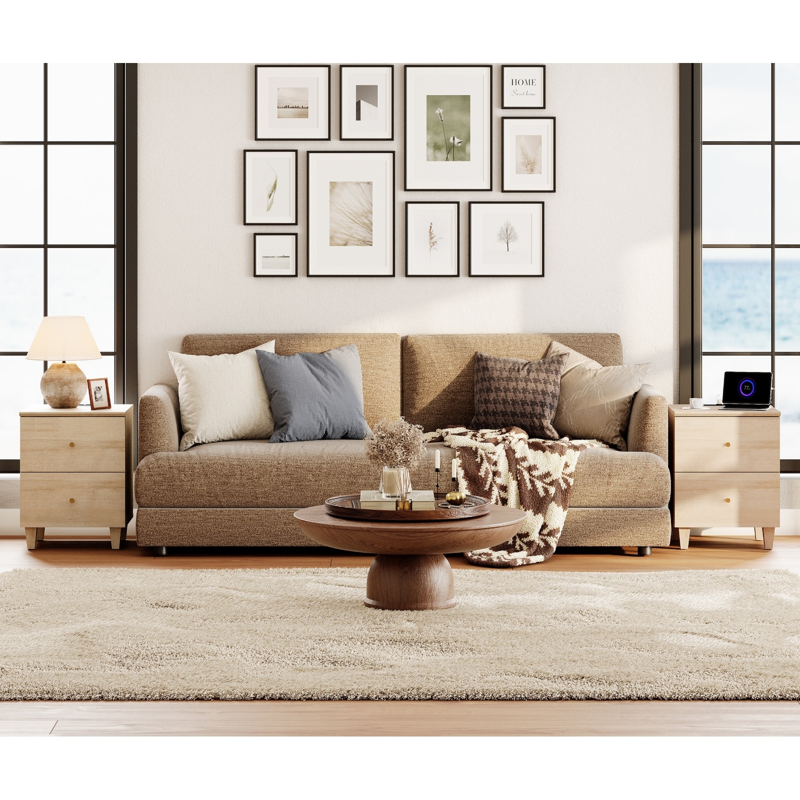 WAMPAT End Table with Charging Station and 2 Drawer for Living Room