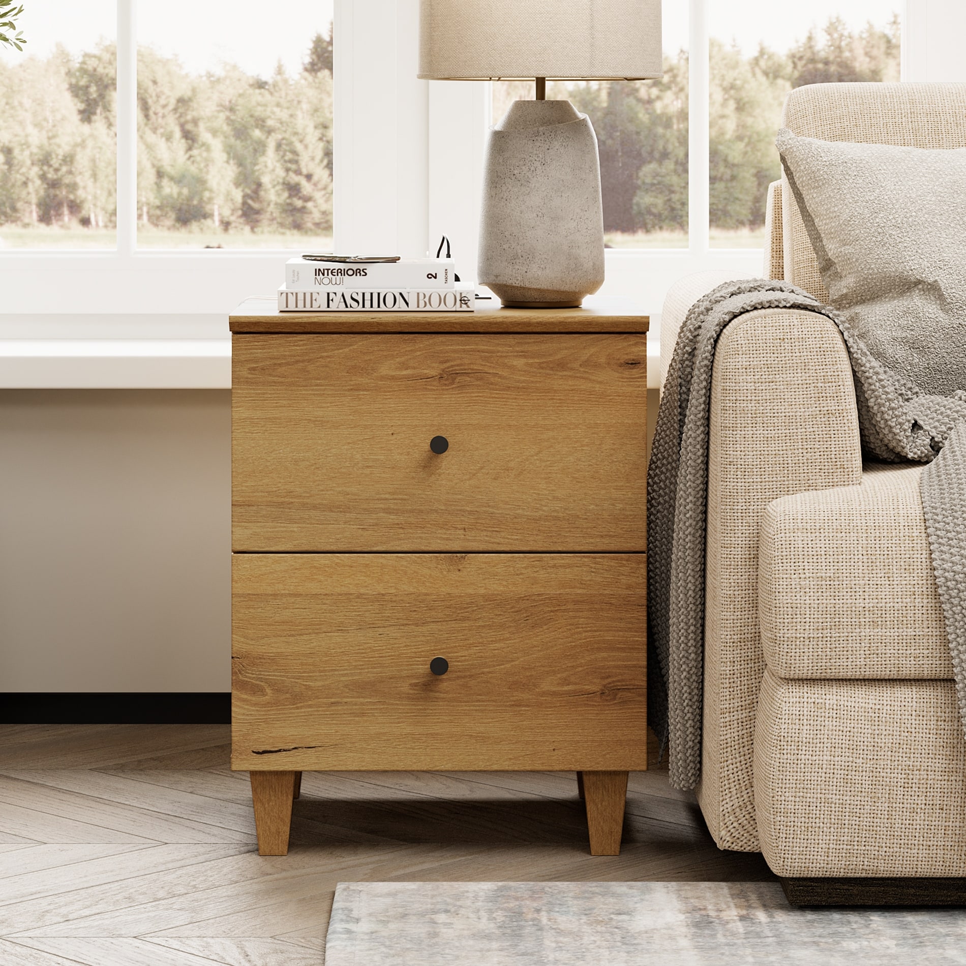 Farmhouse End Table with 2-Tier Storage, 24” Square Wooden Side Table