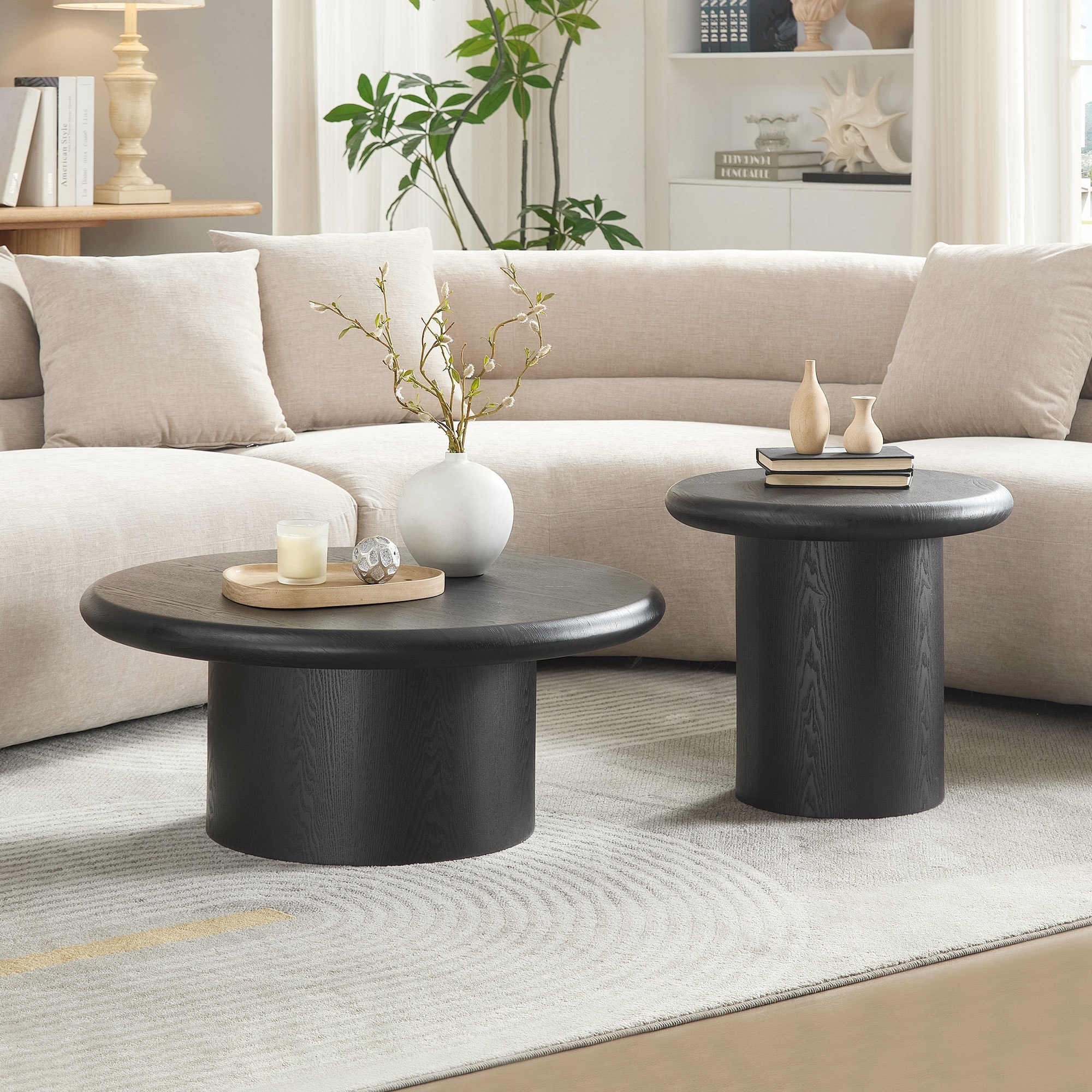 31.49'' Round Coffee Table Side Table with Storage, Modern Sofa Table End Table for Apartment Living Room