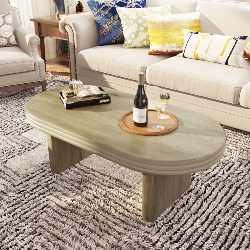 47" Oval Coffee Table with Storage Solid Wood Veneered Modern Coffee Table Accent Tea Table for Living Room, Bedroom