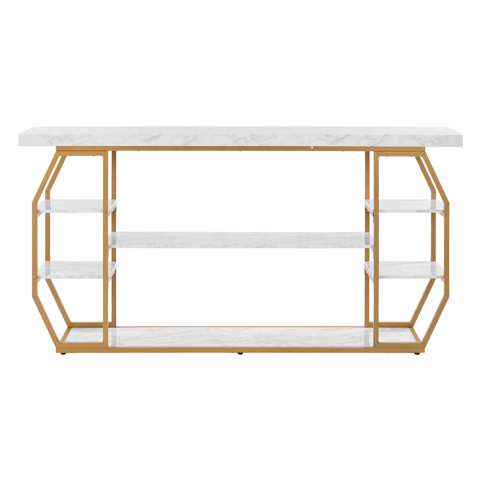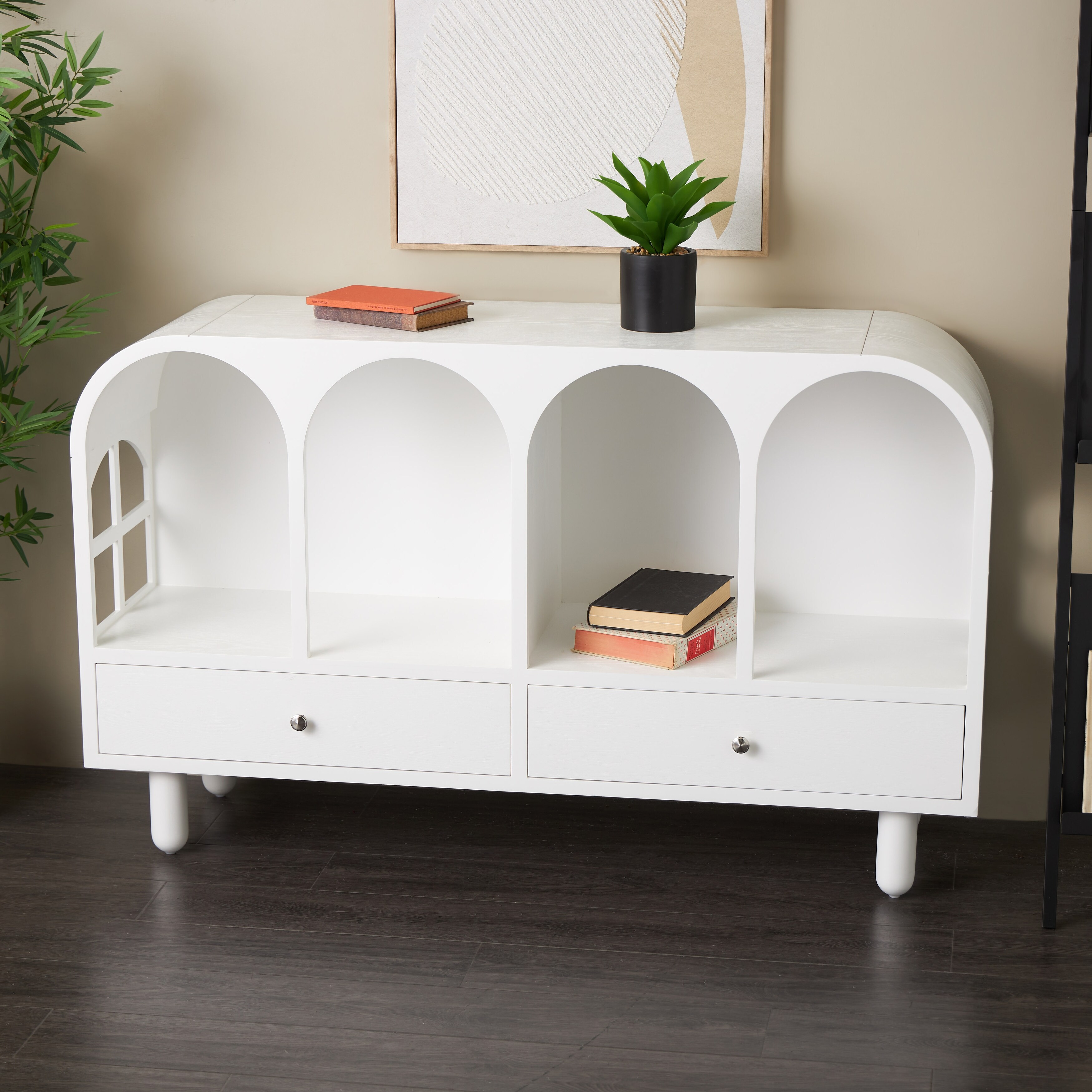 White Wooden Handmade 6 Shelf or 2 Drawer Geometric Living Room Console Table