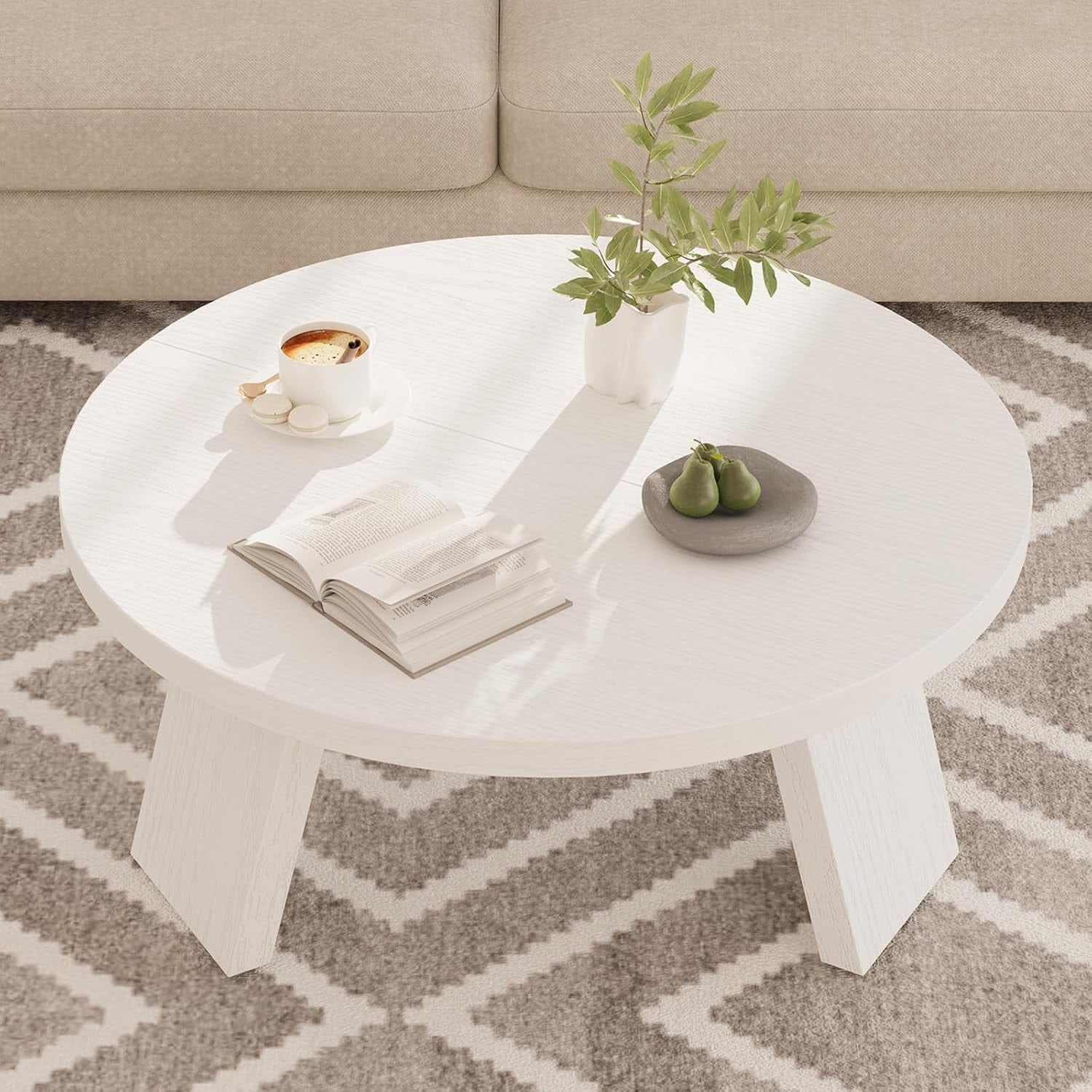 Round Coffee Table for Living Room, 33.5 in Modern Center Tables with 3 Sturdy Legs