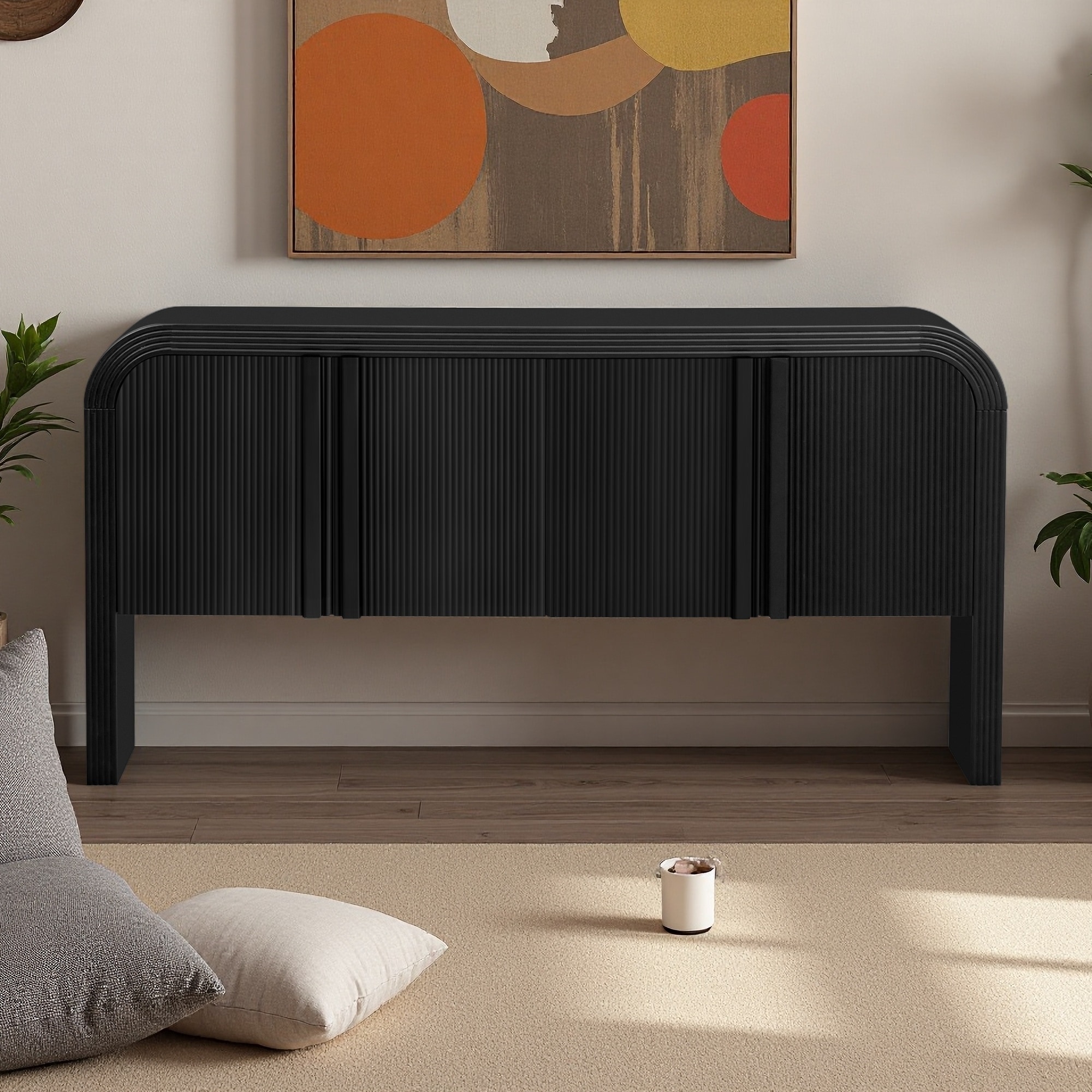 63" Rustic Wave-Pattern Console Table with 4 Doors and Adjustable Shelf, Curved Design Sofa Table for Room, Foyer, and Hallway