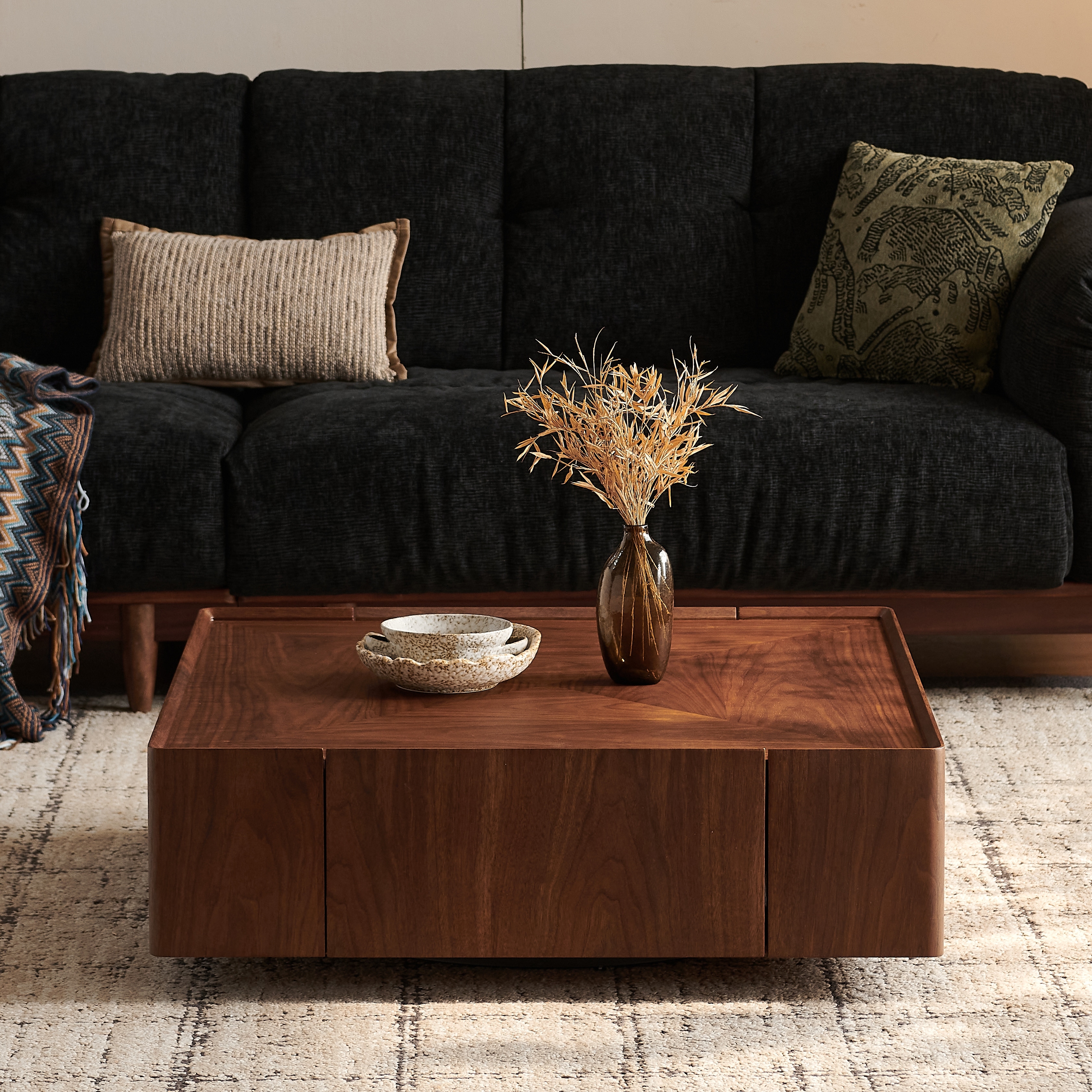 Modern Rectangular Coffee Table, Wood Coffee Table with Storage, 4 Solid Wood Drawers, Fully-Assembled, 51"