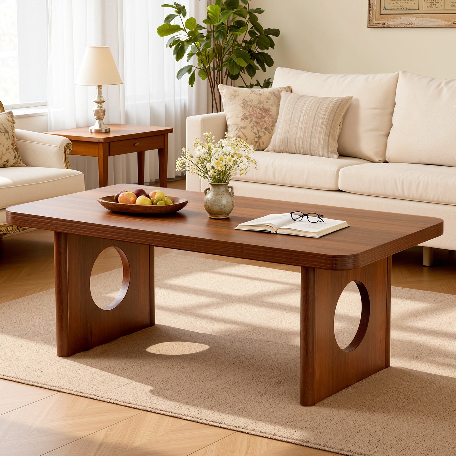 47-Inch Rectangular Center Coffee Table with Solid Pine Wood Legs - 47.24"L x 23.62"W x 17.13"H