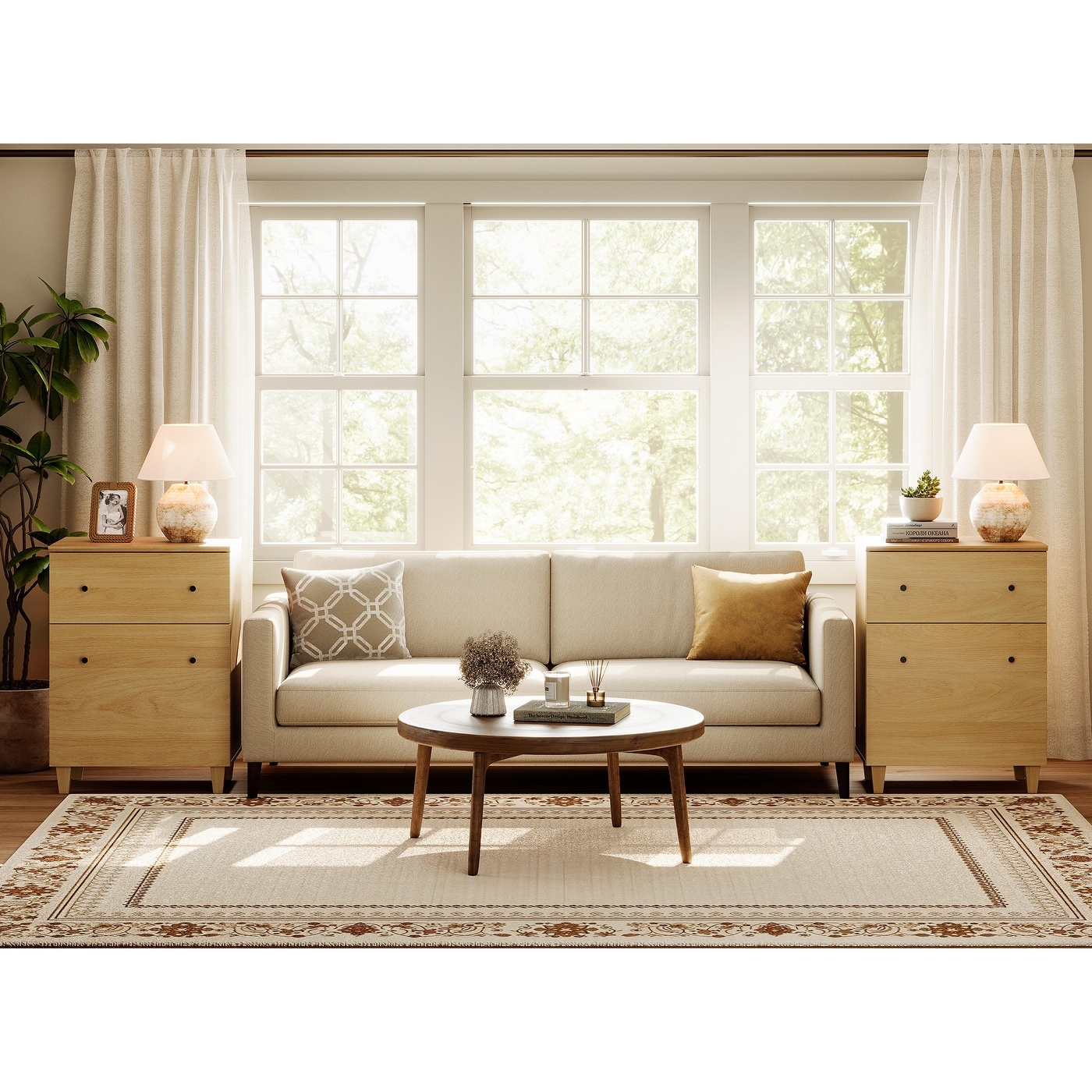 Nesting Coffee Table Set of 2, Round Wooden Accent Table, Handcrafted Circle End Side Table for Living Room