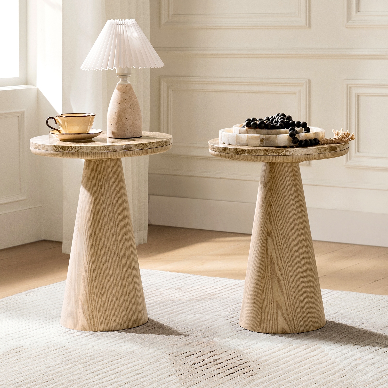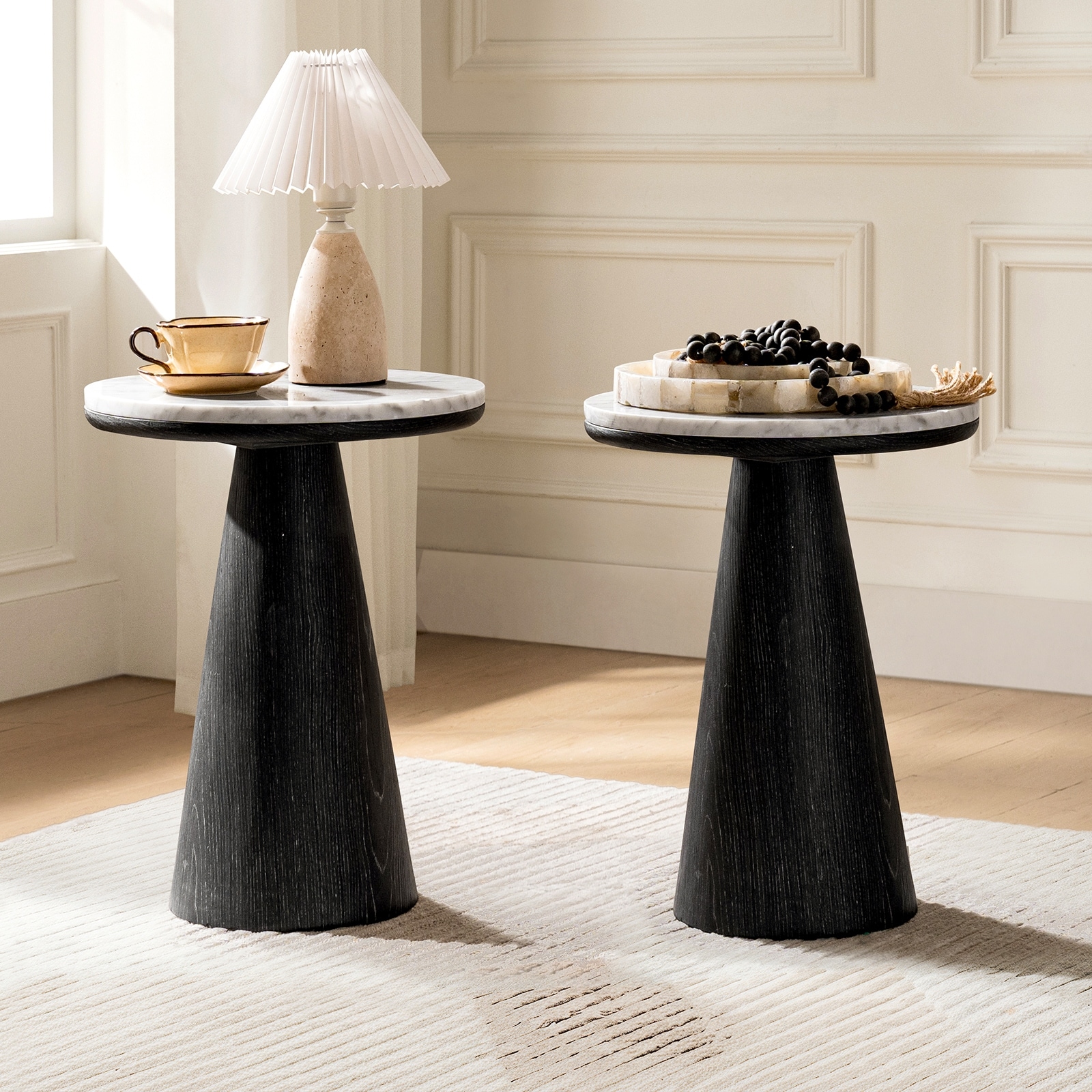HULALA HOME Thaddeus Modern Round End Table with Genuine Marble Top and No Assembly Set of 2