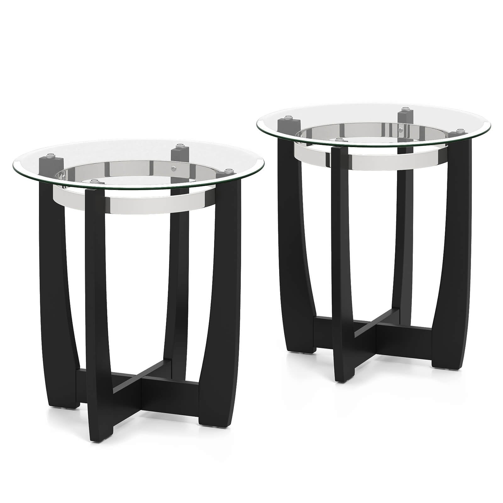 Costway 1/2 PCS 24" Round Side Table Glass End Table with Tempered - See Details