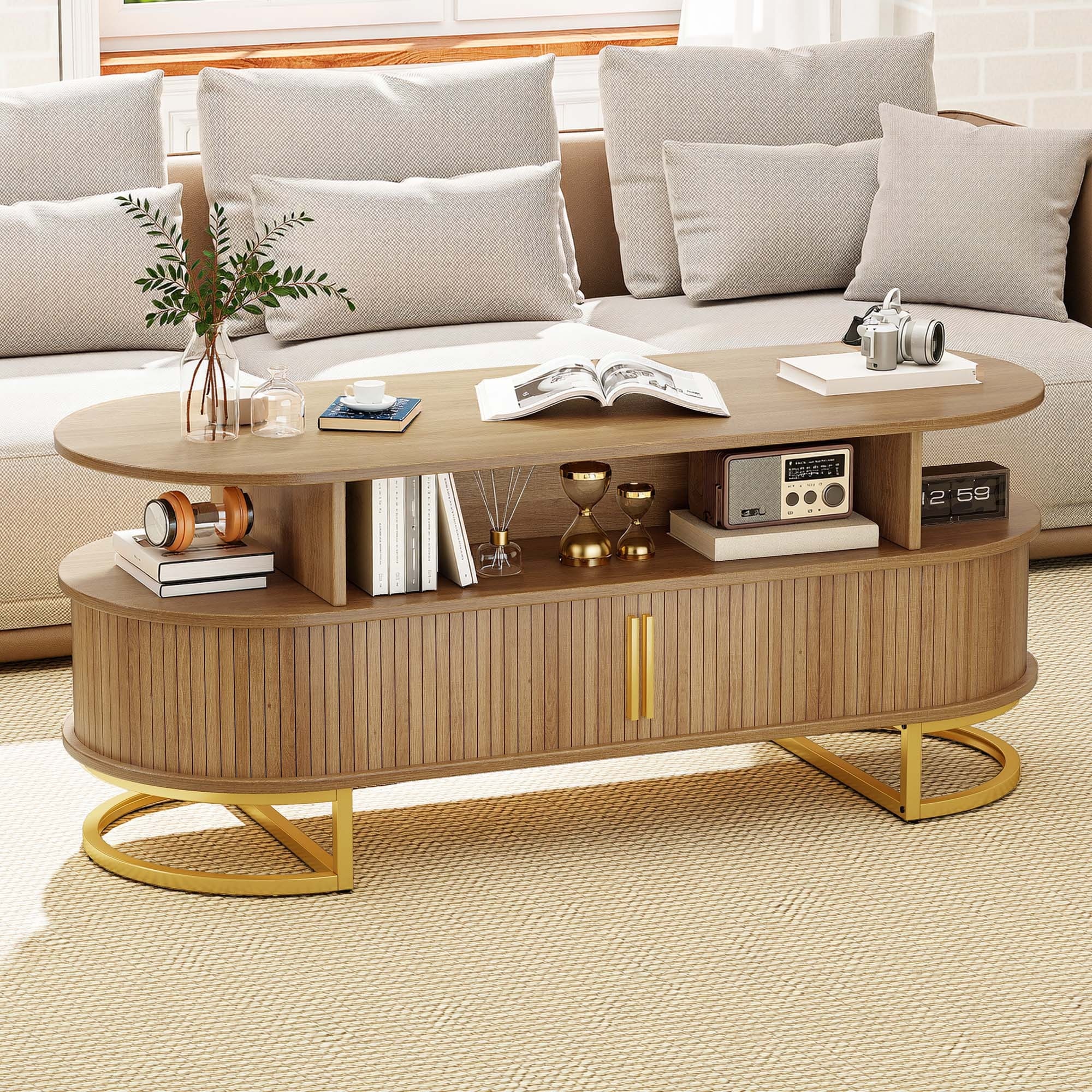 Moasis Oval Fluted Coffee Table with Sliding Doors