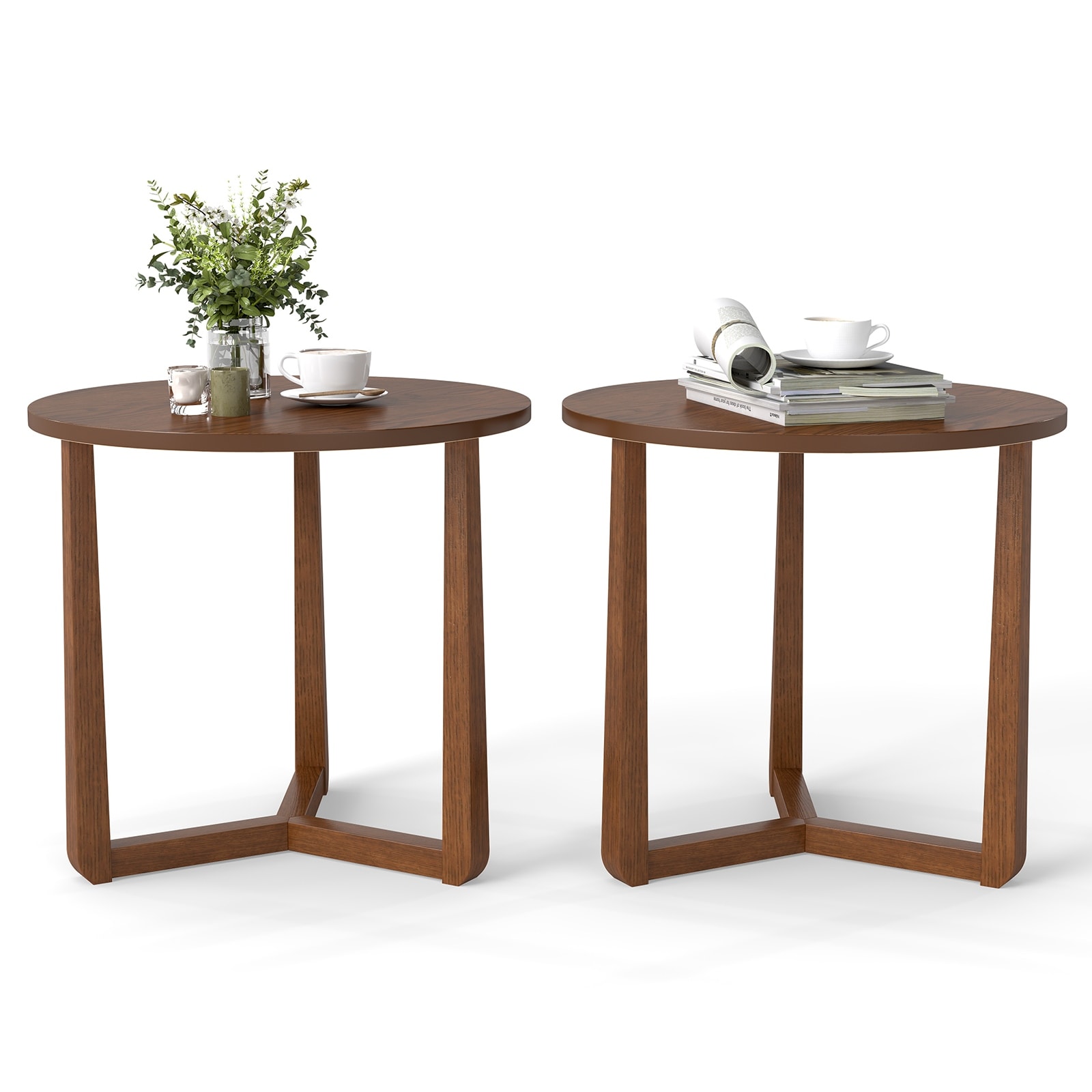 Gymax 2PCS Round Side Table w/Sturdy Rubber Wood Legs Triangular