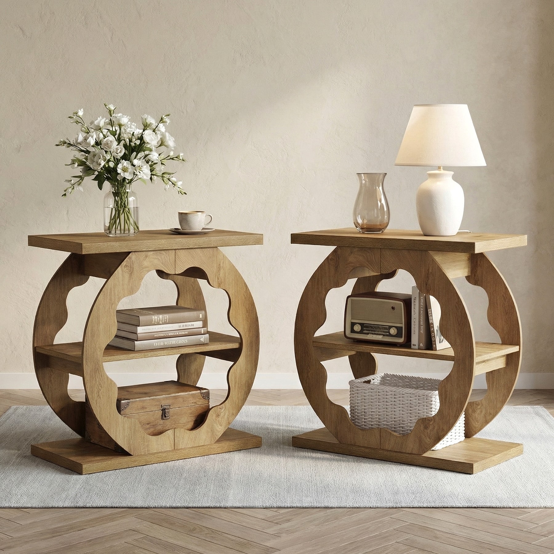 3 Tier End Side Table for Living Room, Bedroom, Elegant Curved Structure