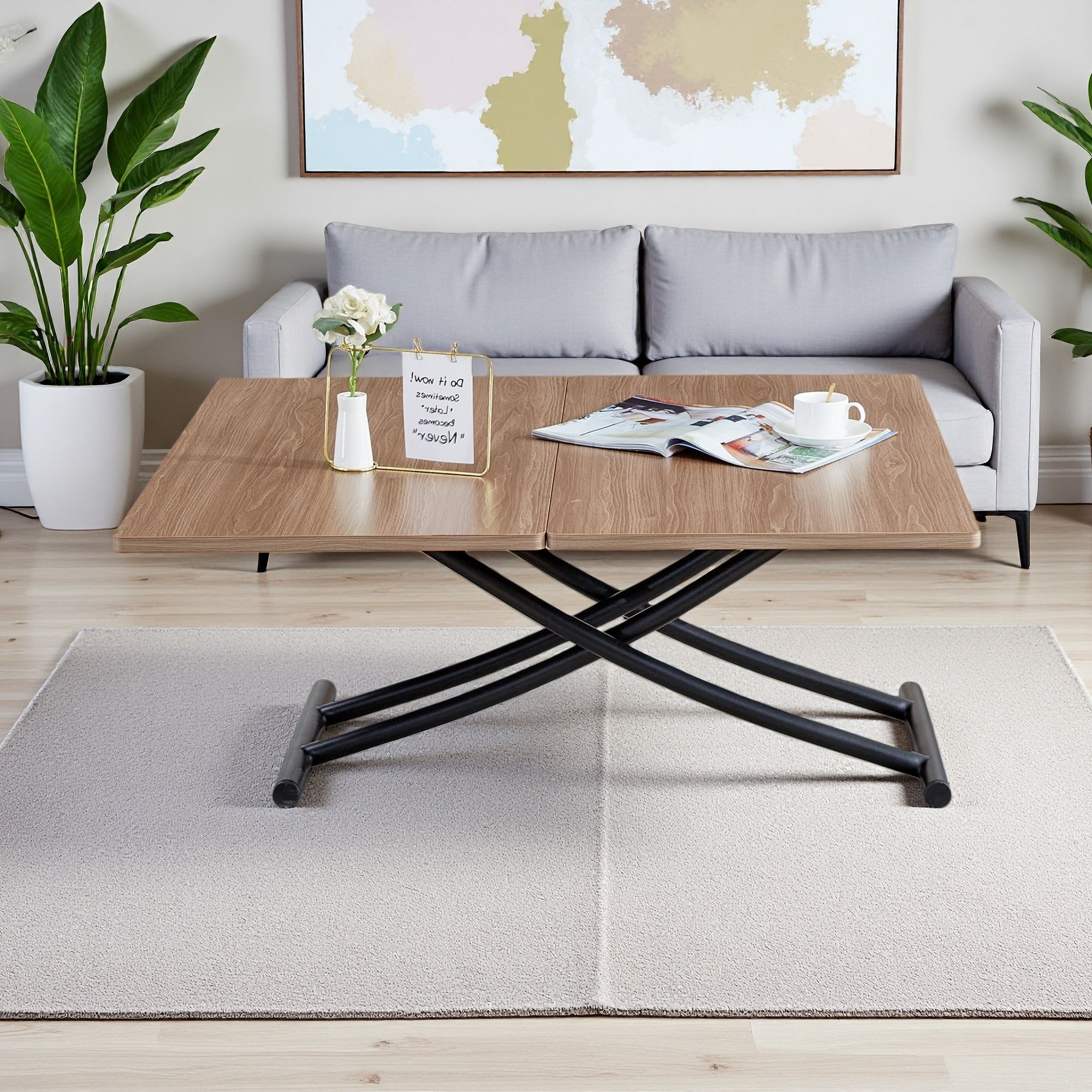 43" Multifunctional Lift Table with Wood Grain Top and Metal Legs
