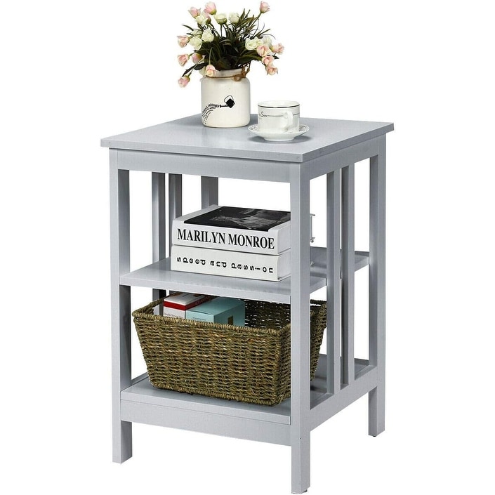 3-Tier Nightstand, Wood Sofa Side Table with Reinforced Bars, Multifunctional End Table for Bedroom and Living Room (Gray)