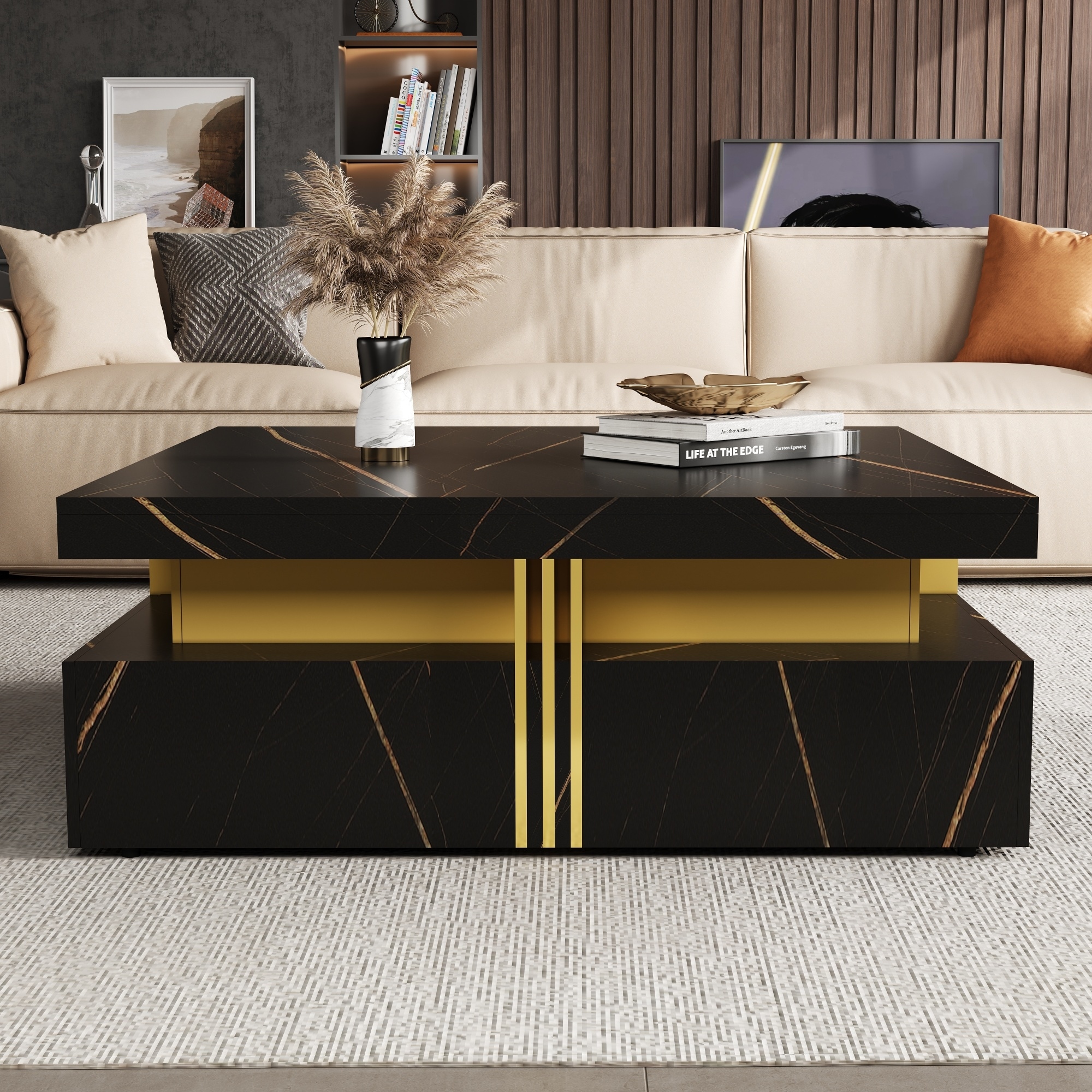 Modern Black Square Storage Coffee Table With 4 Drawers