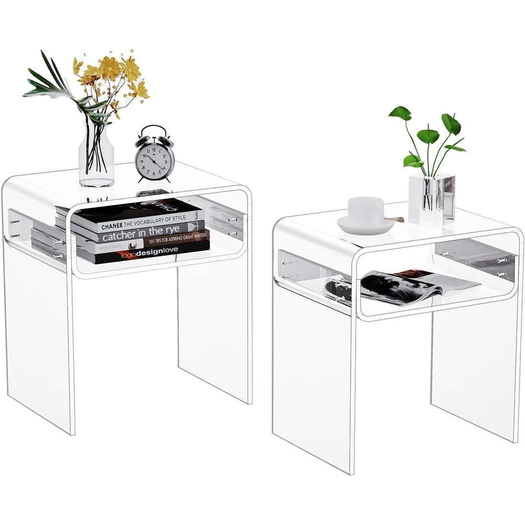 Modern 2-Tier Acrylic End Table for Living Room or Bedroom, Easy Assembly, Double Storage Space