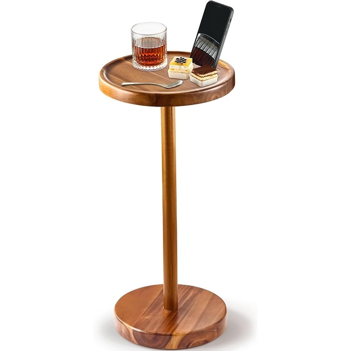 Compact Drink Table with Phone Slot, 24.4" Tall Pedestal Accent for Living Room