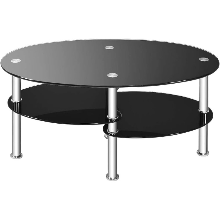 Modern 3-Tier Oval Glass Coffee Table with Chrome Legs, Smooth Top for Living Room or Office Use