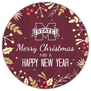 Mississippi State Bulldogs 12" Merry Christmas & Happy New Year Sign