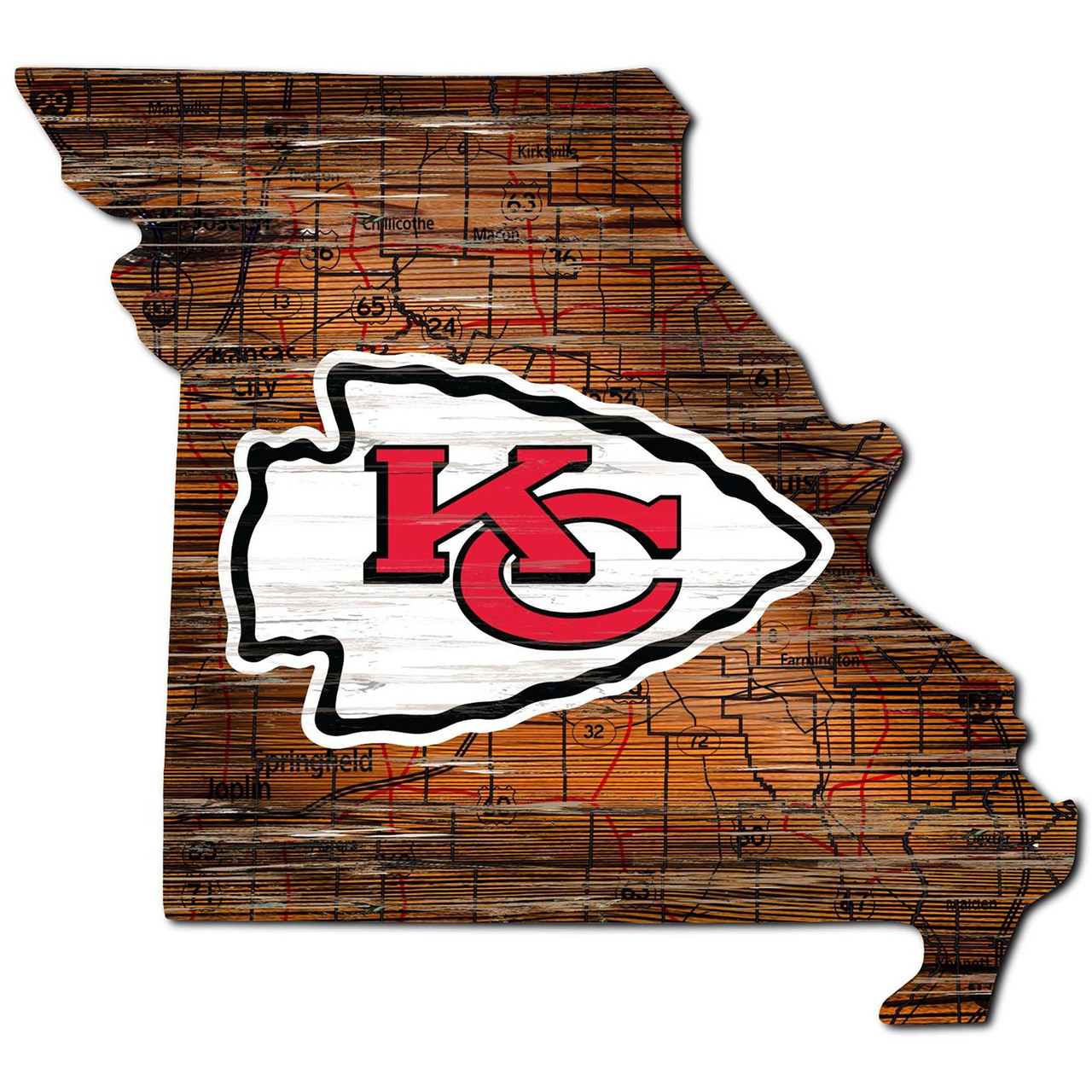 Kansas City Chiefs Distressed State with Logo Sign