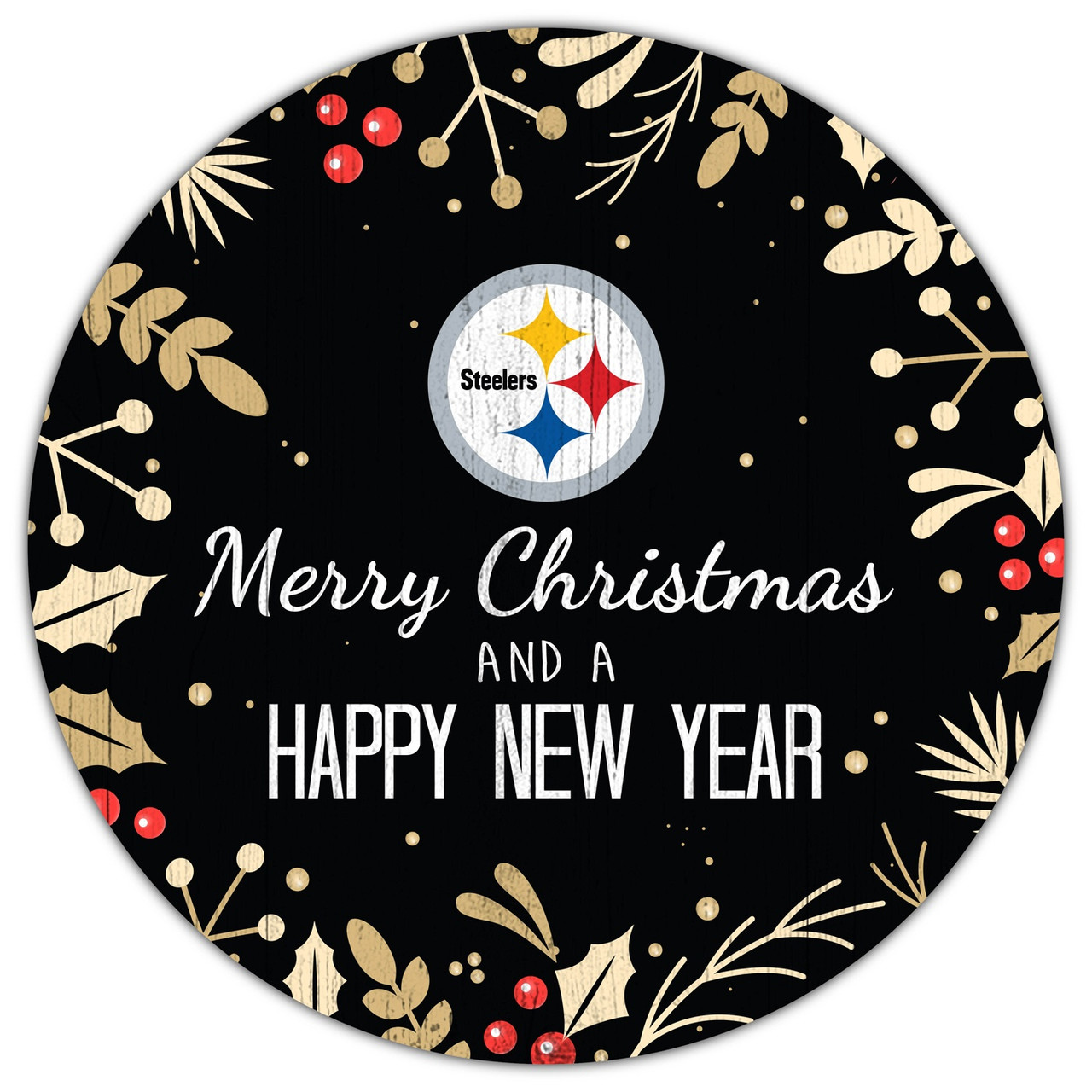 Pittsburgh Steelers 12" Merry Christmas & Happy New Year Sign