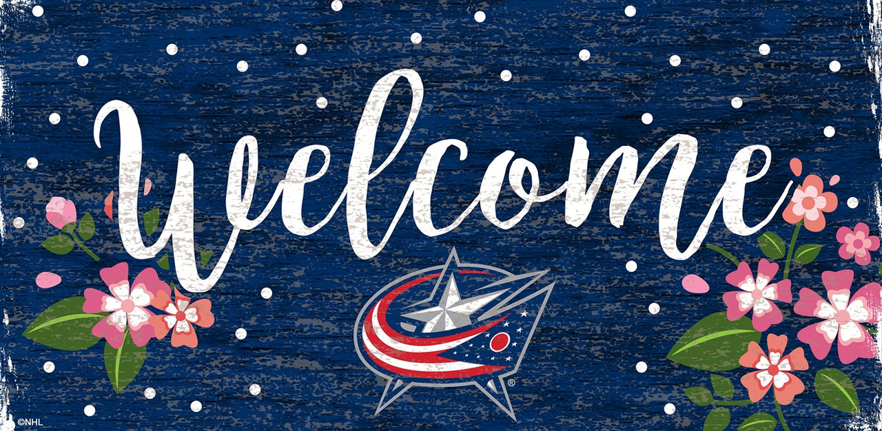 Columbus Blue Jackets 6" x 12" Floral Welcome Sign