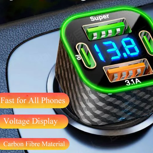 Super Fast Car Phone Charger, Dual PD, Voltage Display Adapter For IPhone, Xiaomi, Oppo, Vivo, Samsung Super Fast Car Phone Charger, Dual PD, Voltage Display Adapter For IPhone, Xiaomi, Oppo, Vivo, Samsung