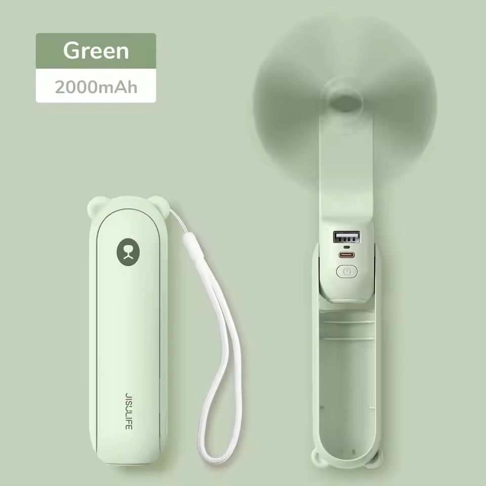 3 In 1 Portable Handheld Fan With Power Bank And Flashlight 2000mah Green F8