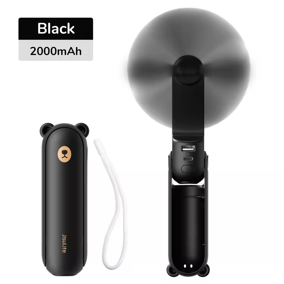 Portable USB Rechargeable Foldable Mini Handheld Fan With Power Bank black