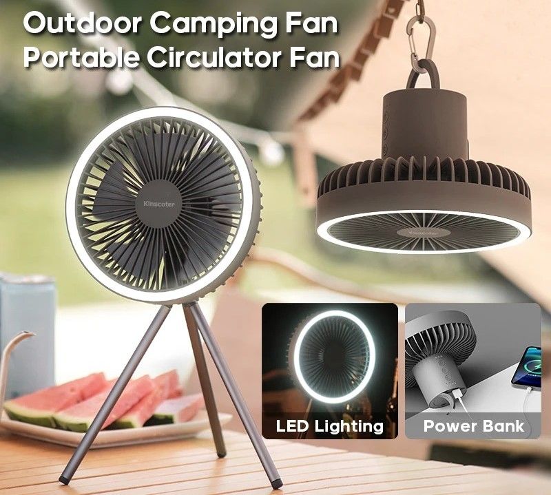 6 In 1 Camping Fan With LED Light Rechargeable Outdoor Air Circulator orange