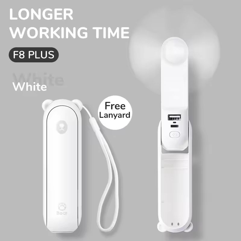 3 In 1 Portable Handheld Fan With Power Bank And Flashlight 4500mah White F8x