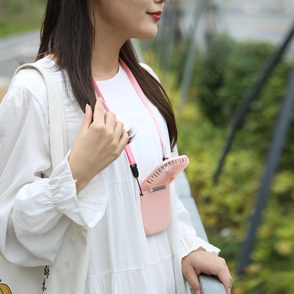 CoolBreeze Portable Neck Fan Bladeless Rechargeable Air Cooler With Display pink
