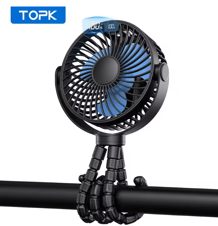 TOPK Portable Stroller Fan With LED Display 5000mAh Rechargeable Personal Cooling Fan TOPK Portable Stroller Fan With LED Display 5000mAh Rechargeable Personal Cooling Fan