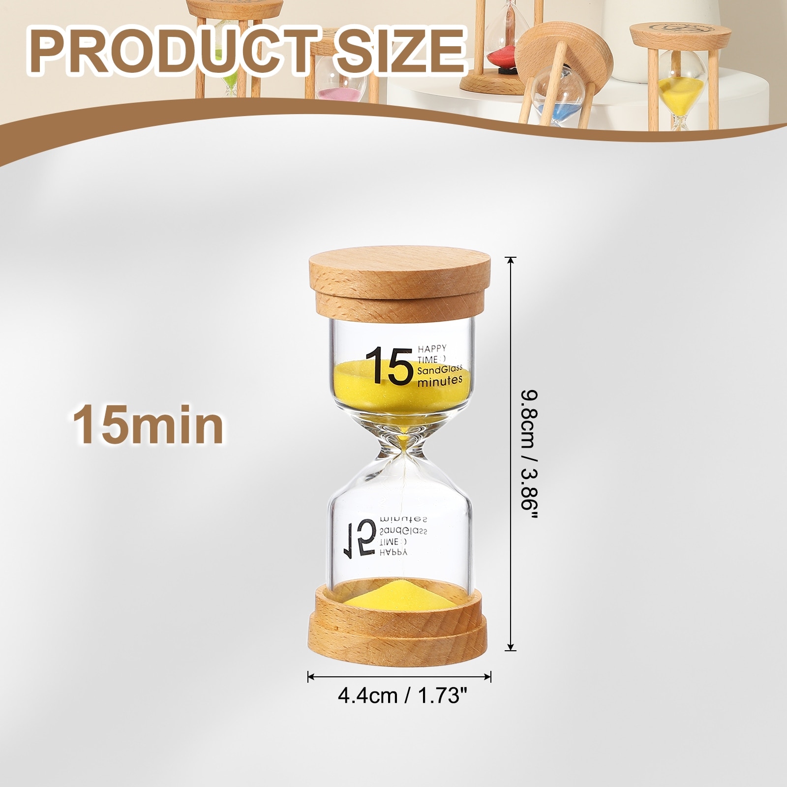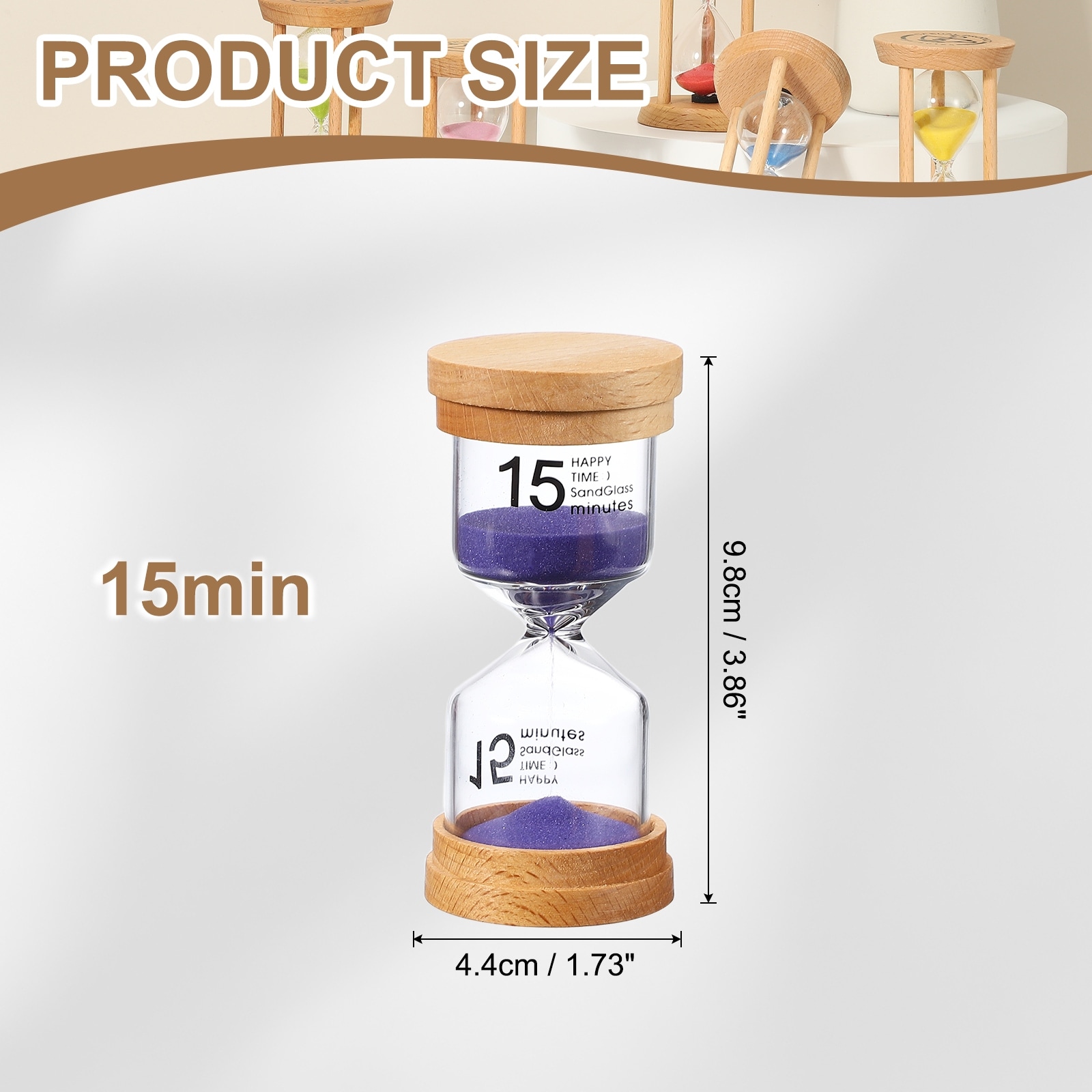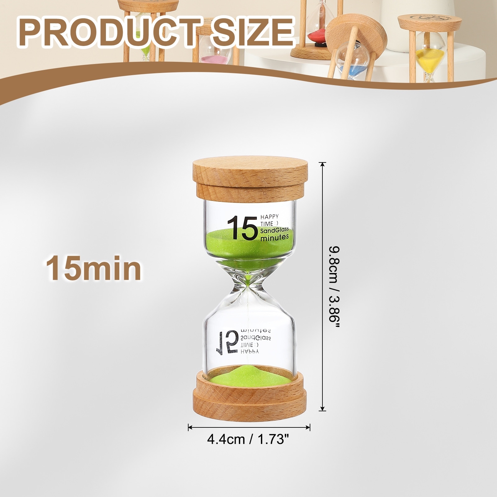 Sand Timer, Wooden Sand Watch High Glass Sandglass Timer for Living Room Kitchen - 15 Minute