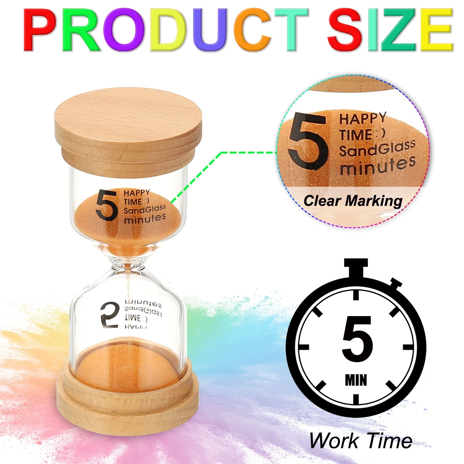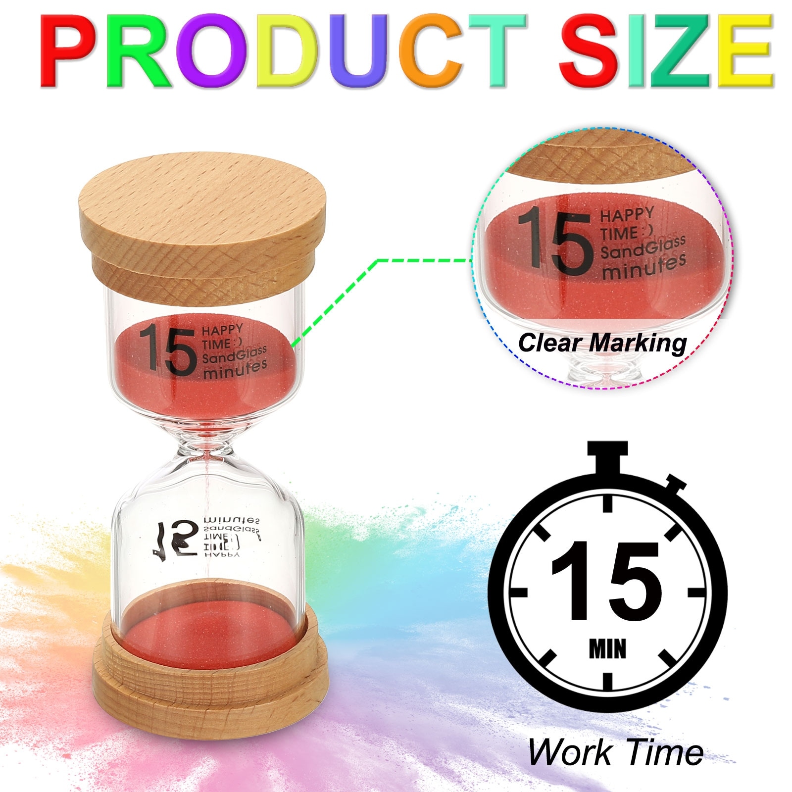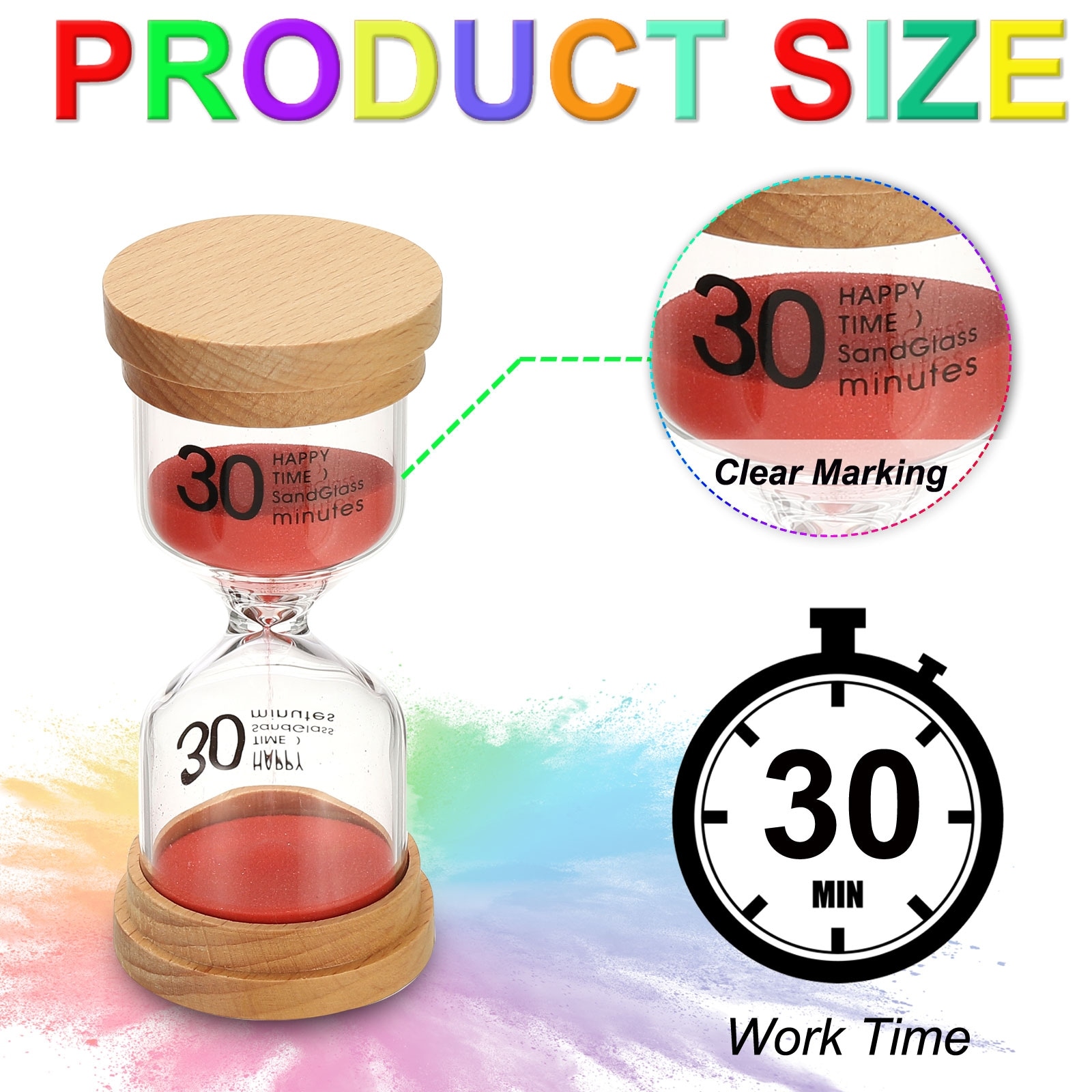 Sand Timer, Wooden Sand Watch High Borosilicate Glass Sandglass Sand Clock for Games, Classroom, Kitchen, Office