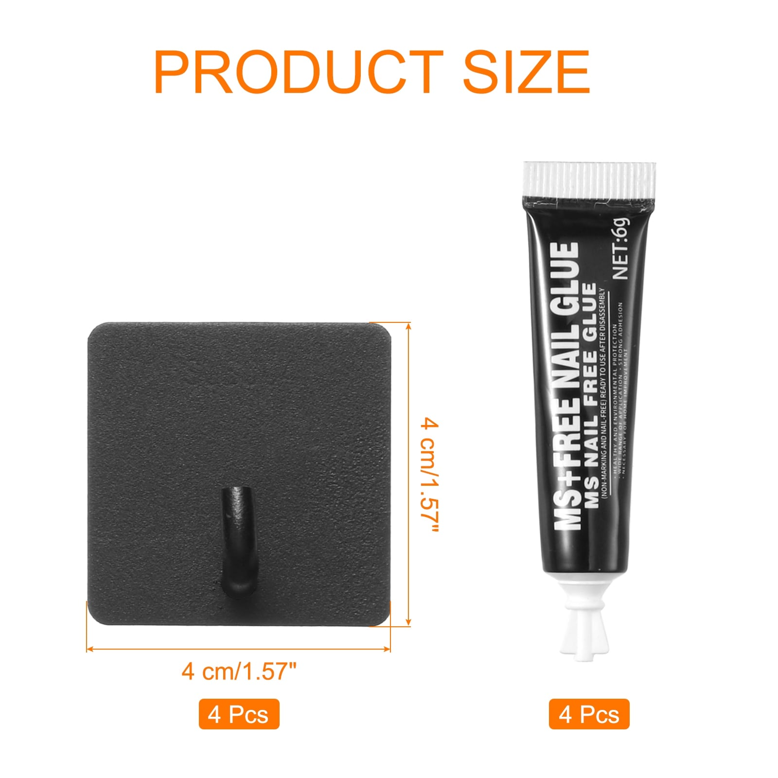 Self Adhesive Hooks 4pcs Stainless Steel Sticky Hook for Hanging Clothes Silver - Black - 1.57 inch x 1.57 inch