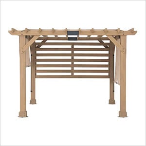 Sunjoy Group 10 x 11 Modern Wooden Hot Tub Pergola Kit with Tan Adjustable Canopy