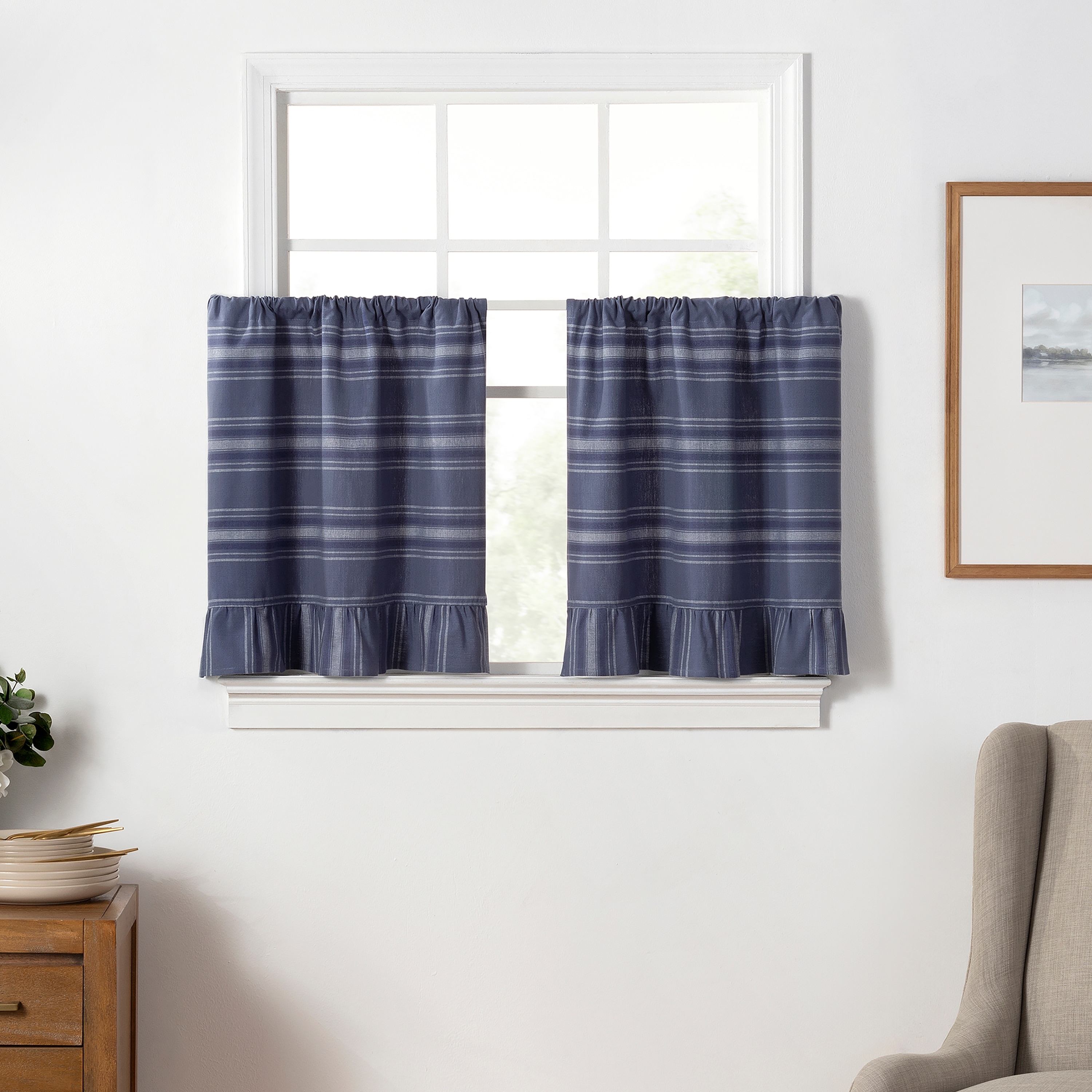 Martha Stewart Ruffle Stripe Valance or Tier Pair Curtain Collection