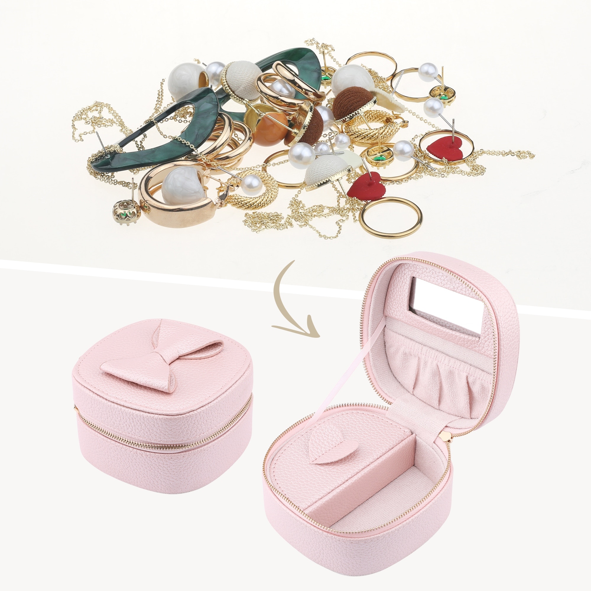 PU Leather Travel Jewelry Box with Mirror, Portable Jewelry Organizer Case Storage Display Holder for Earring Ring 5x5x3in