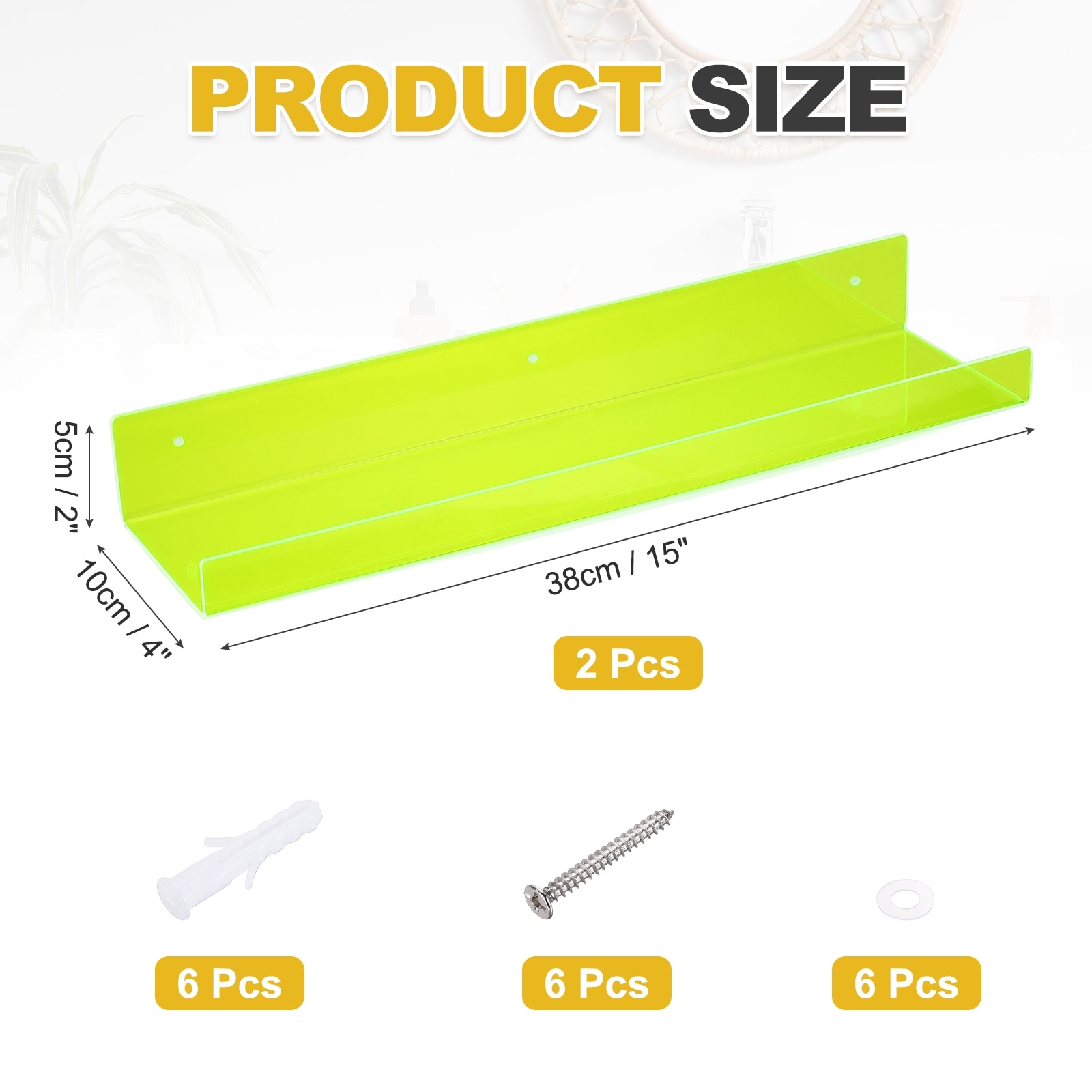Acrylic Shelves for Wall, Floating Shelves Wall Mount Display Organizer for Bathroom, Bedroom, Living Room, Room Decor - 15 Inch