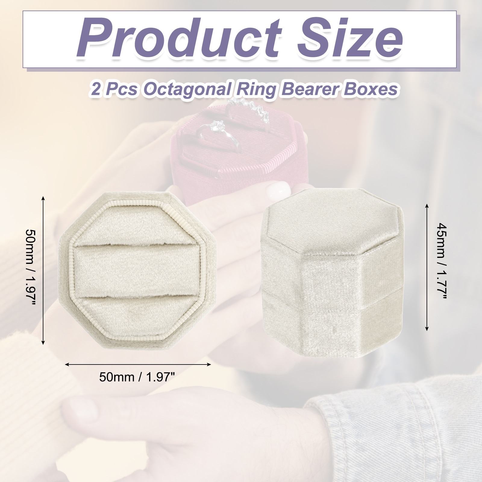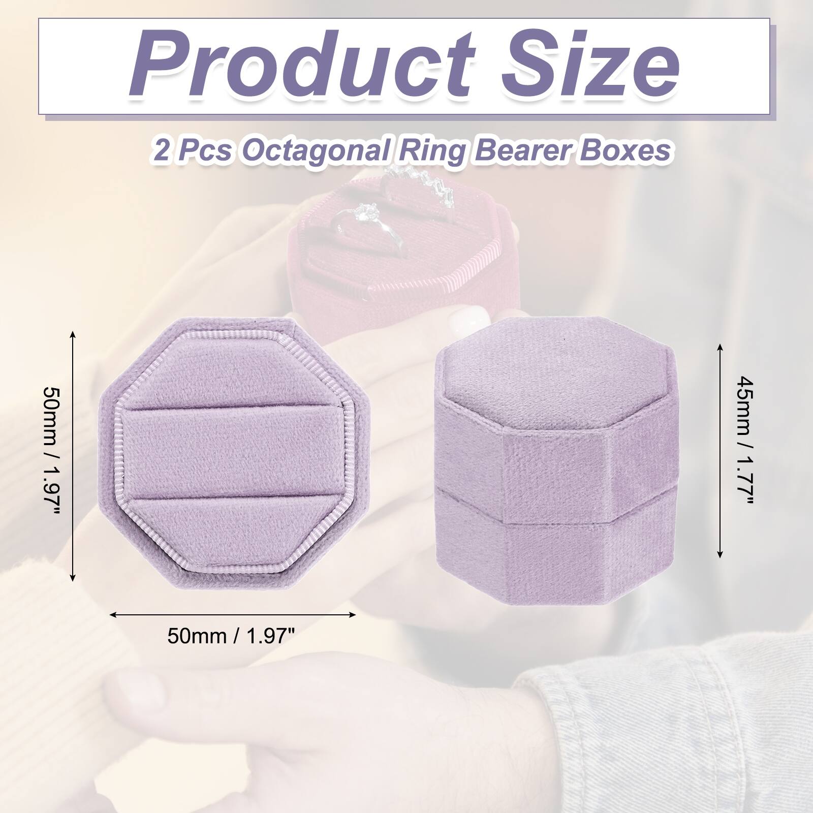 2 Slots Velvet Ring Boxes, 2 Pack Octagonal Jewelry Organizer, Lavender - 50x47x45mm