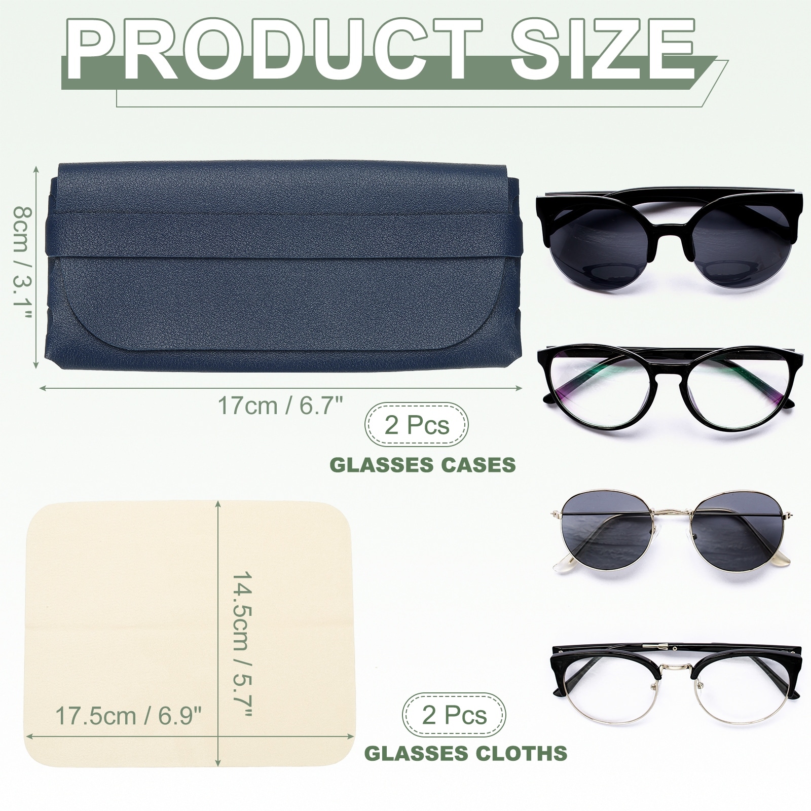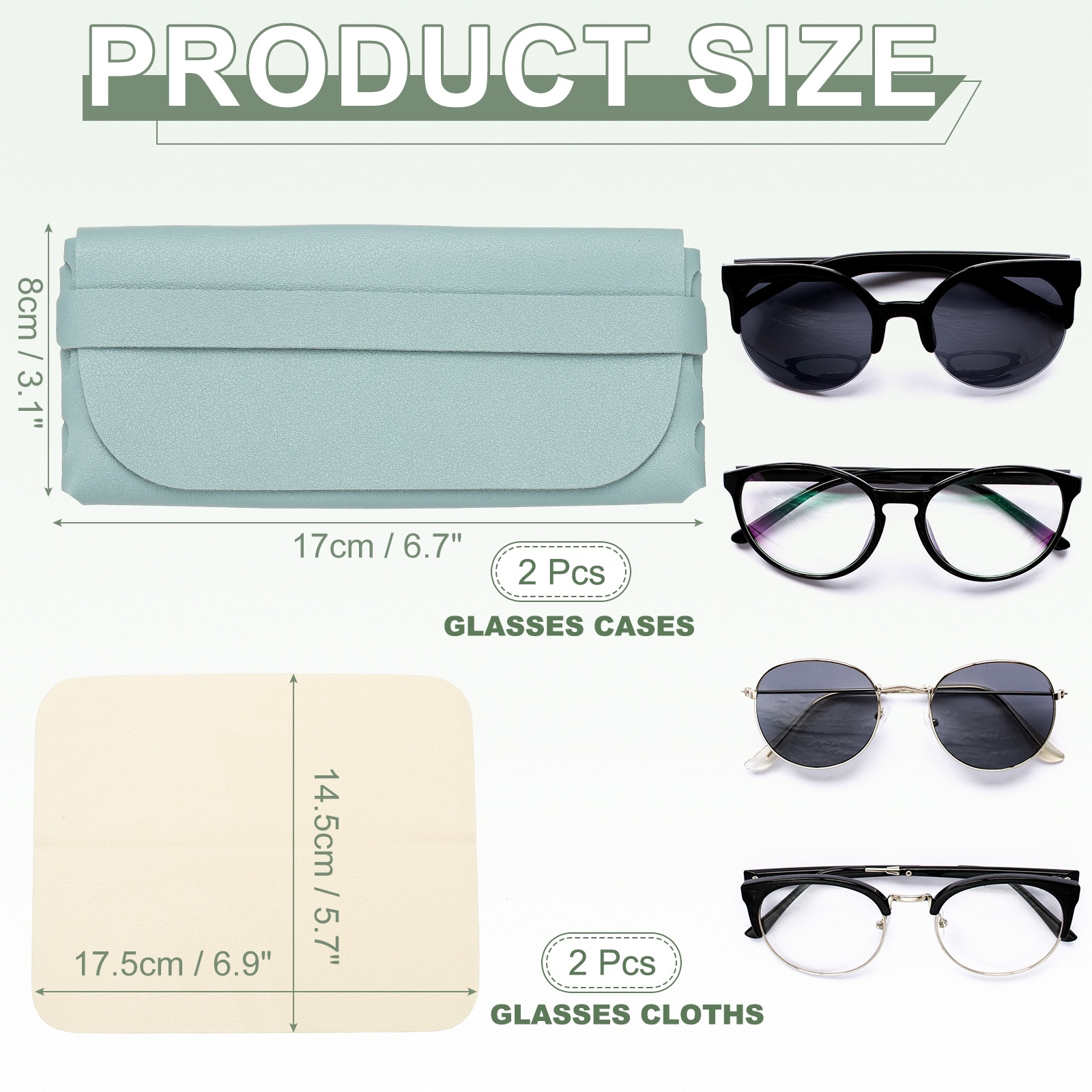Soft Leather Eyeglass Case, Portable Reading Eyeglass Pouch Glasses Sleeve with 2 Cleaning Clothes for Women Men - One Size