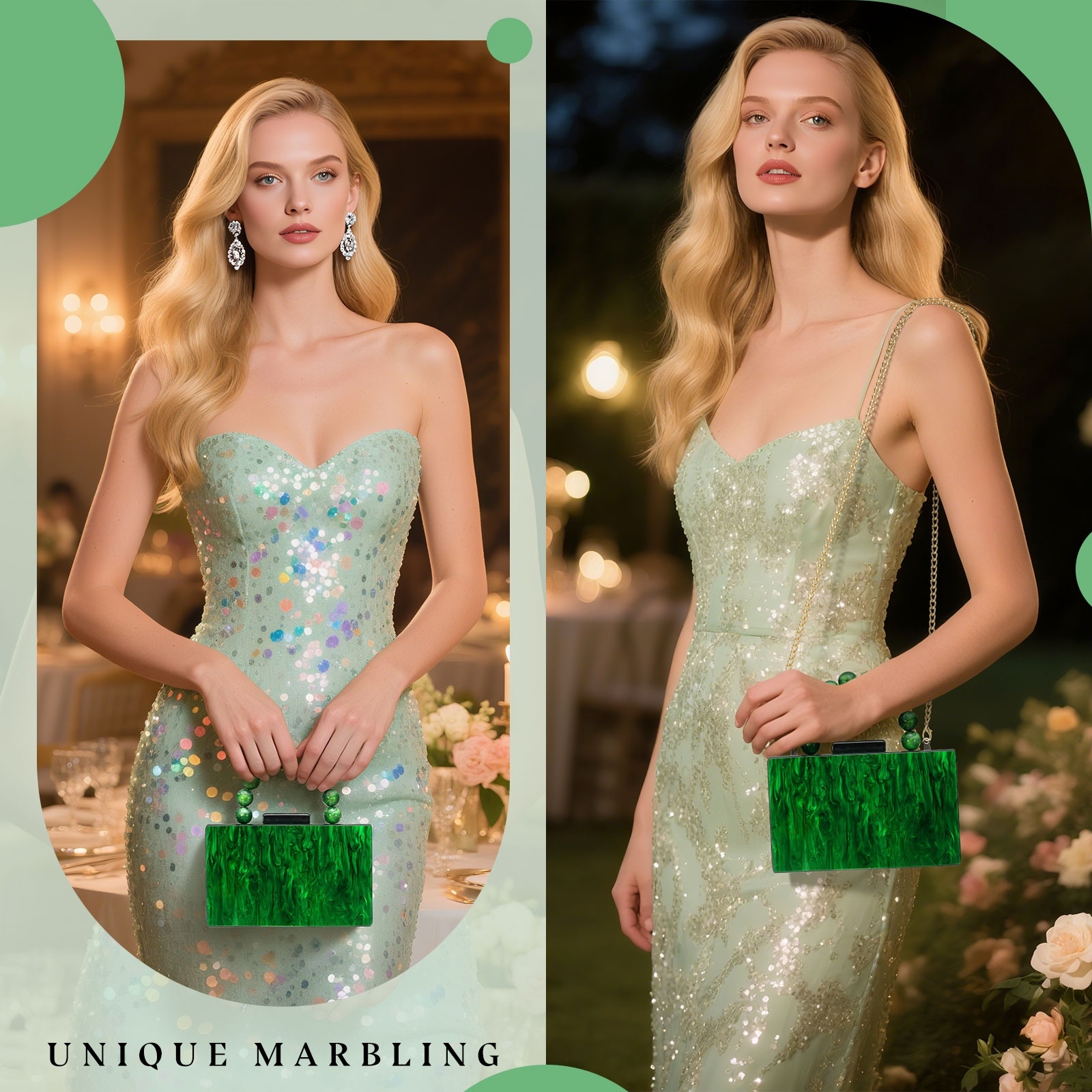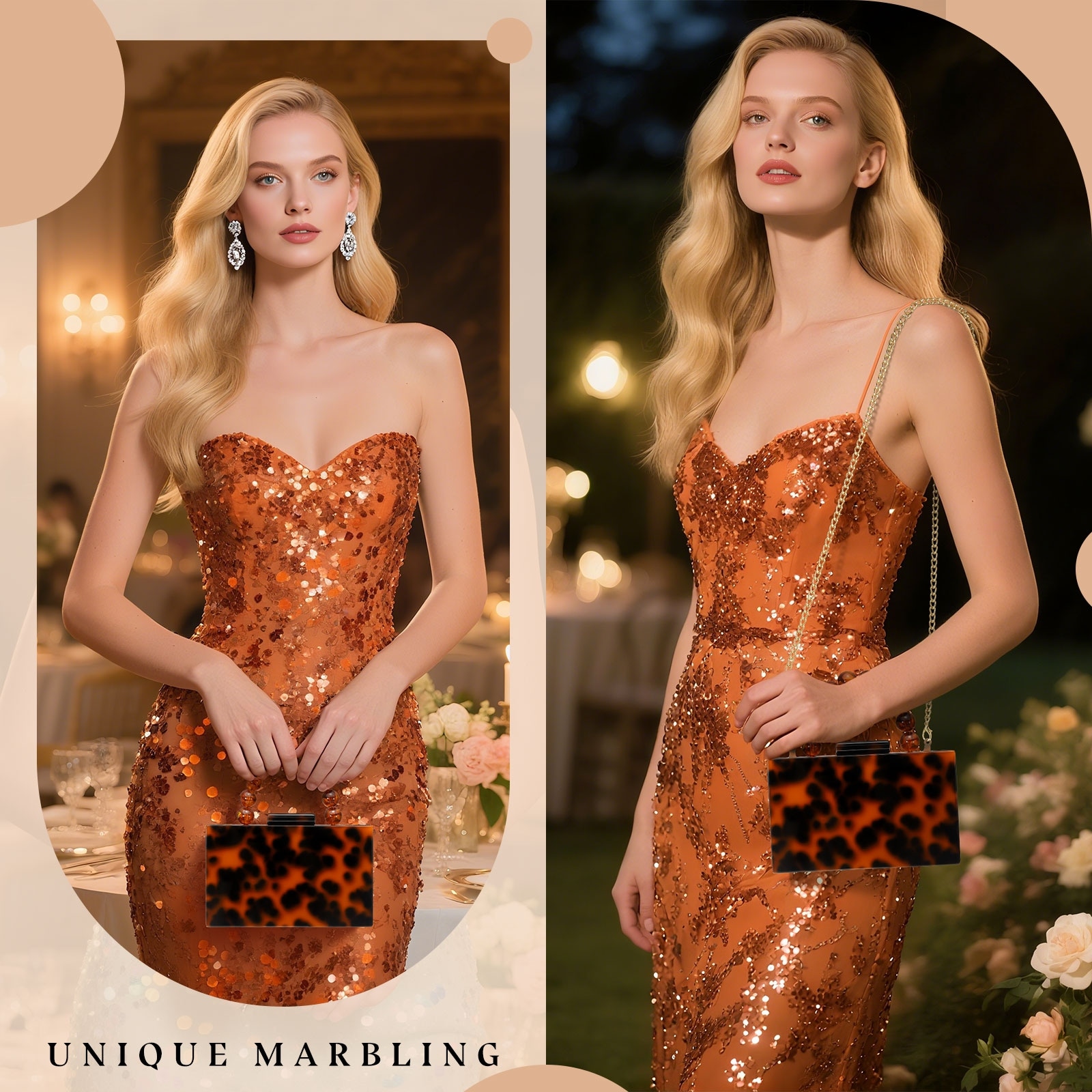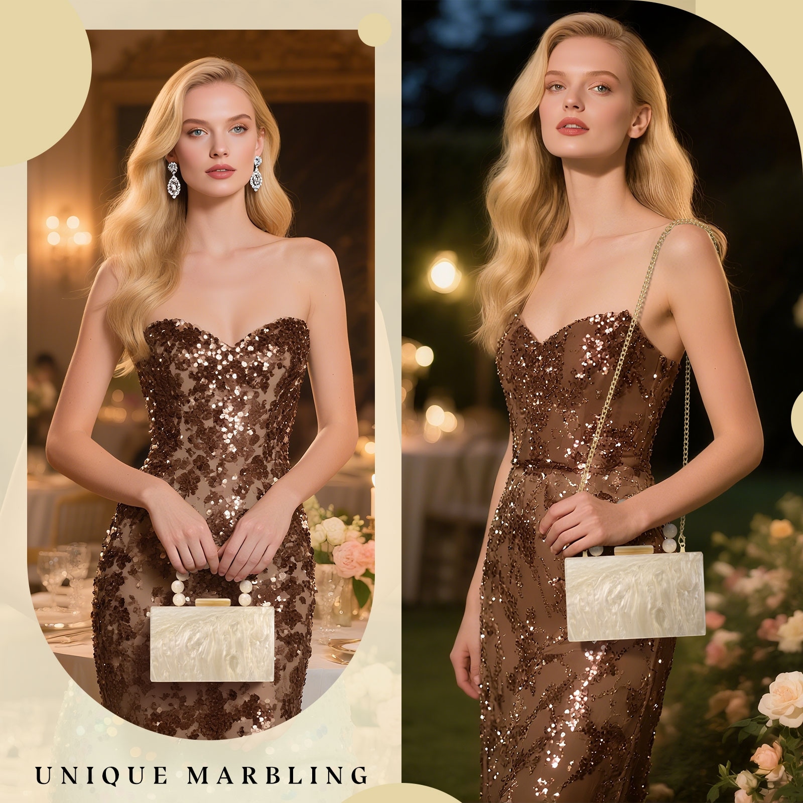 Evening Clutch Bag, Acrylic Purses Marbling Handbags for Women Cross Body Bag with Pearl Chain