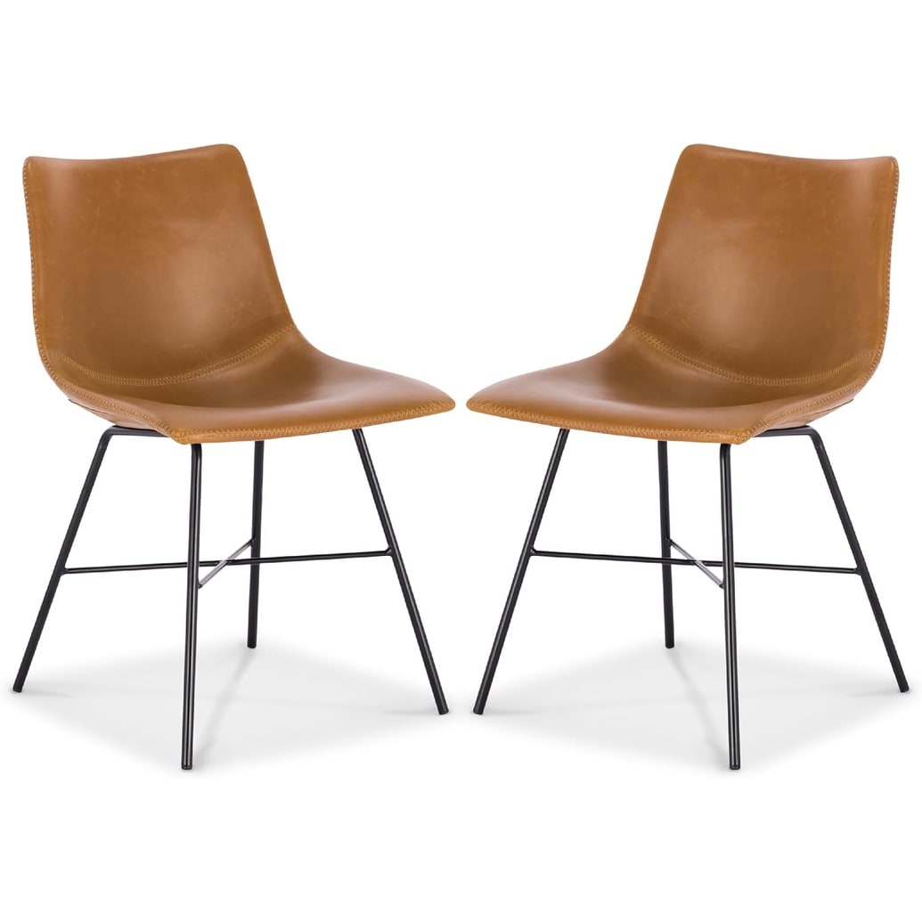 Modern Low-Back Faux Leather Dining Chairs, Set of 2, Matte Black Steel Base, Comfortable and Stylish Tan Seating
