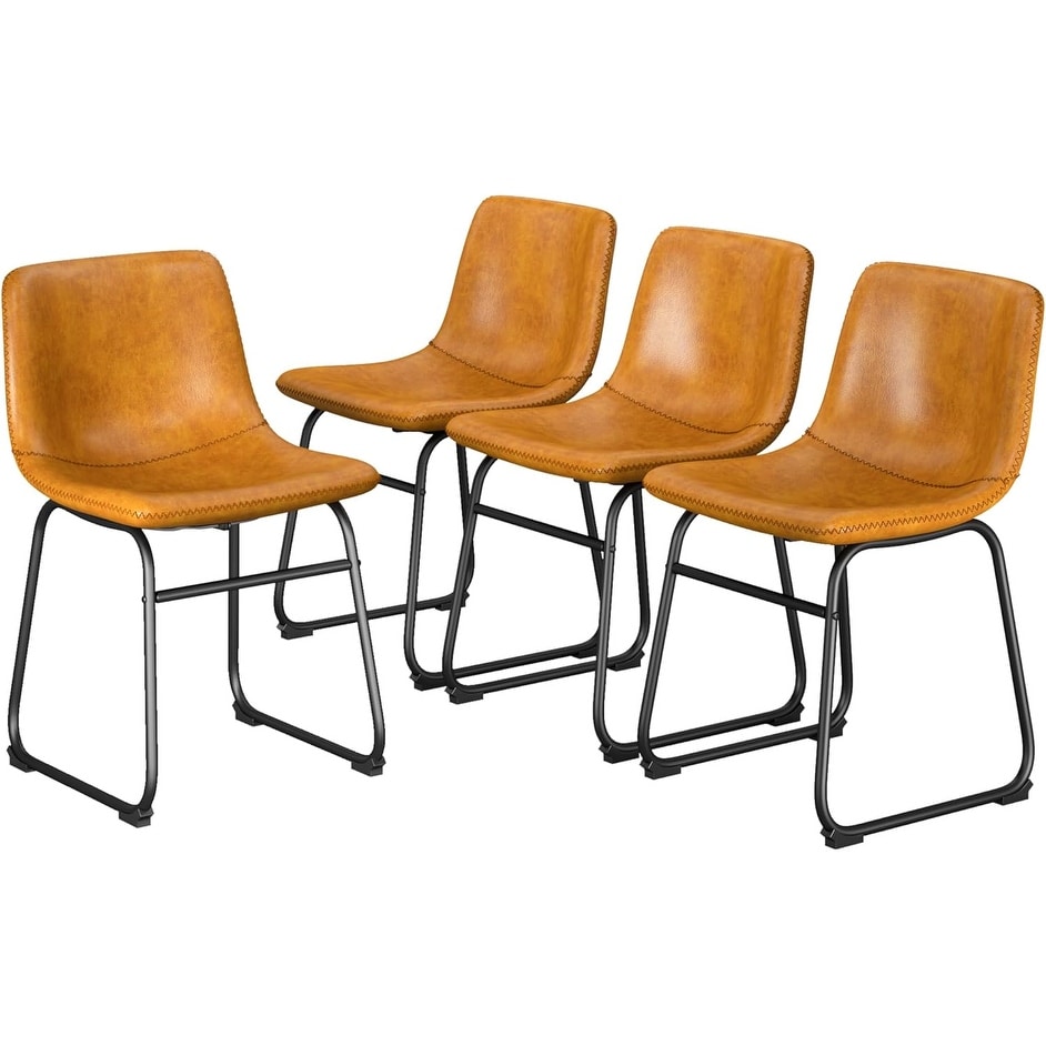 Modern 4-Piece Brown Upholstered Dining Chairs with PU Leather Cushions and Metal Legs