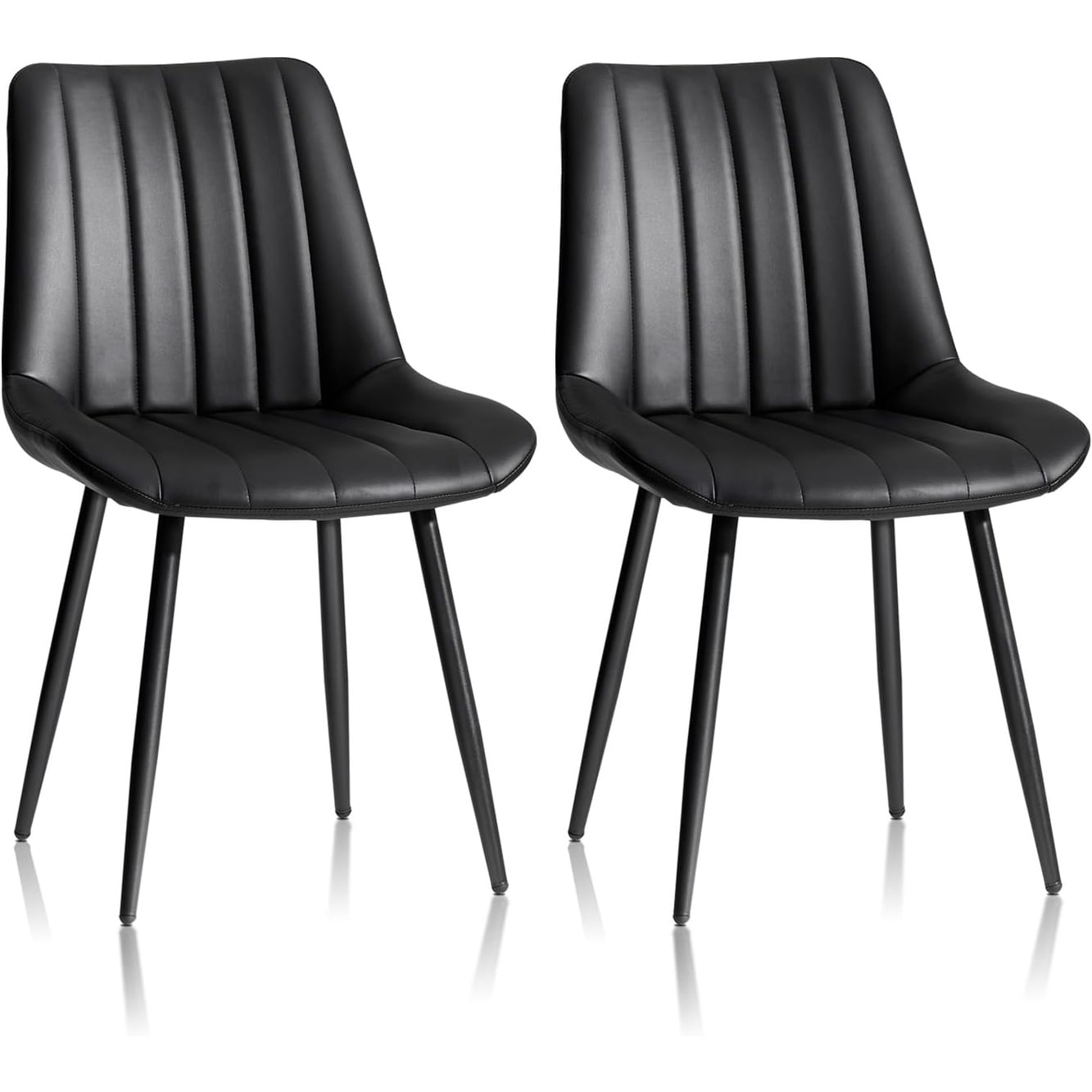 Modern Black Upholstered Dining Chairs Set of 2 with Faux Leather Seat and Metal Legs, Easy Assembly