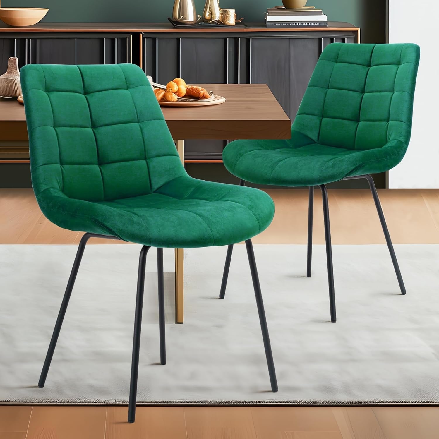 Green Velvet Upholstered Dining Chairs with Metal Legs, Set of 2 for Home Kitchen and Living Room