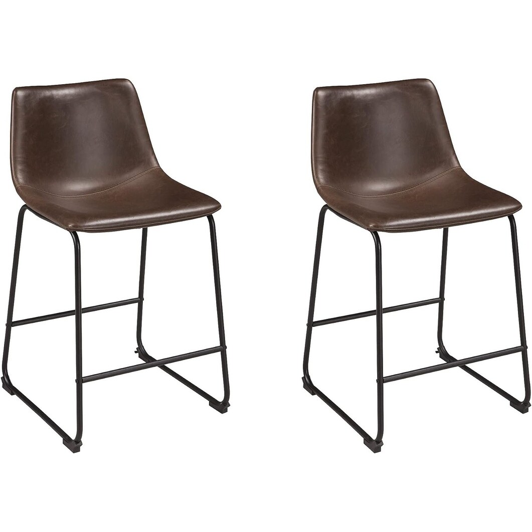 Modern Counter Height Bucket Barstool Set of 2, Brown Faux Leather, Mid-Century Style