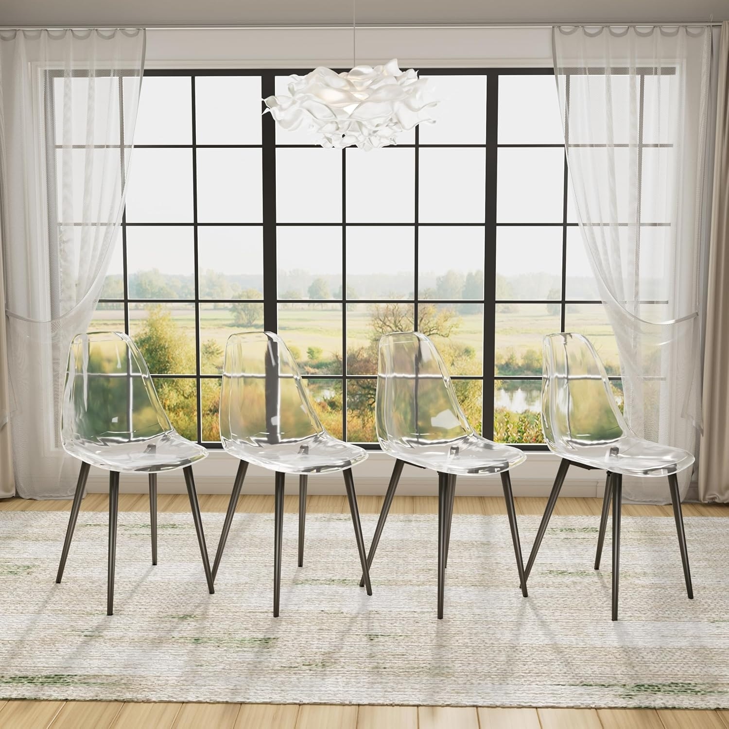Modern Clear Dining Chairs Set of 4 with Transparent Seat and Metal Legs