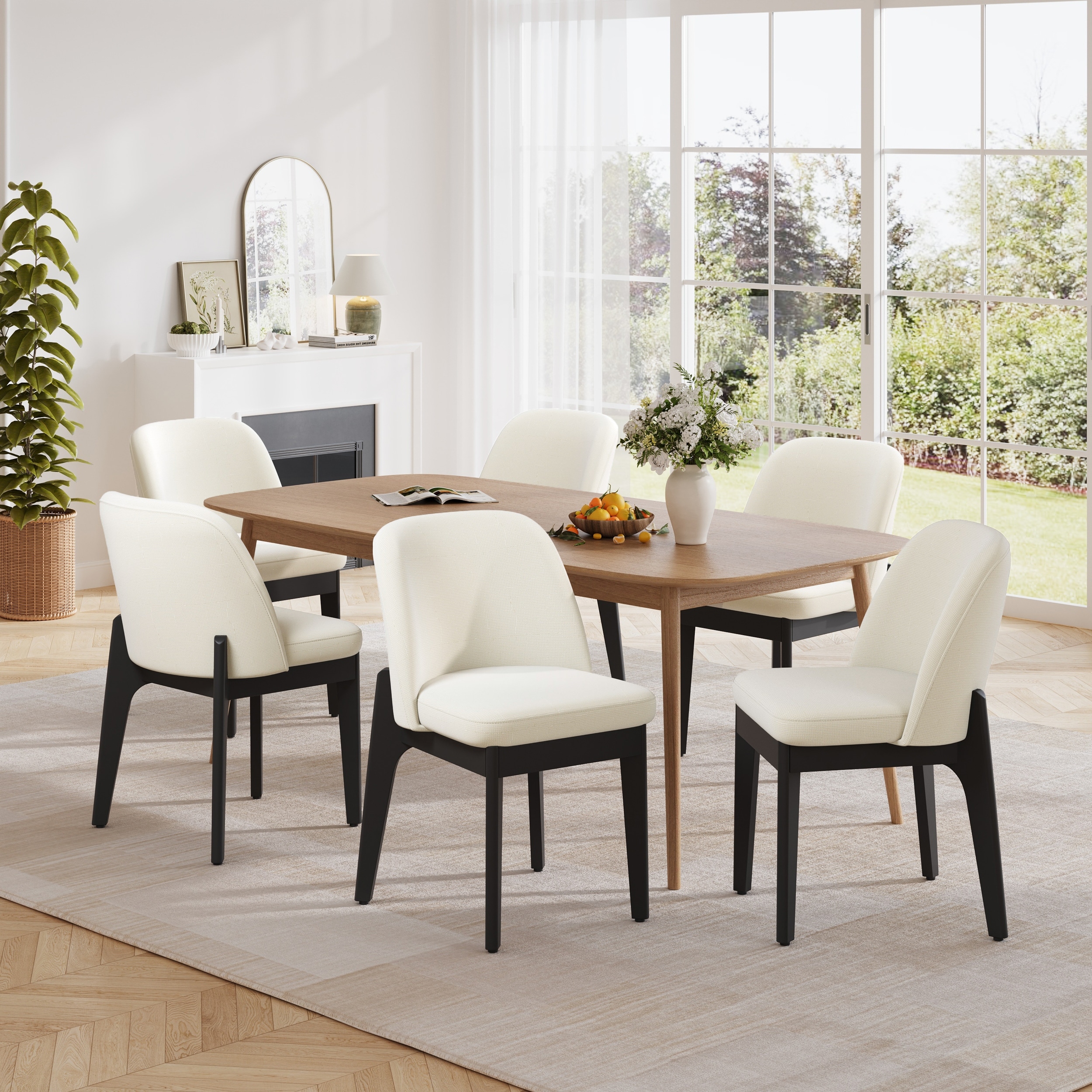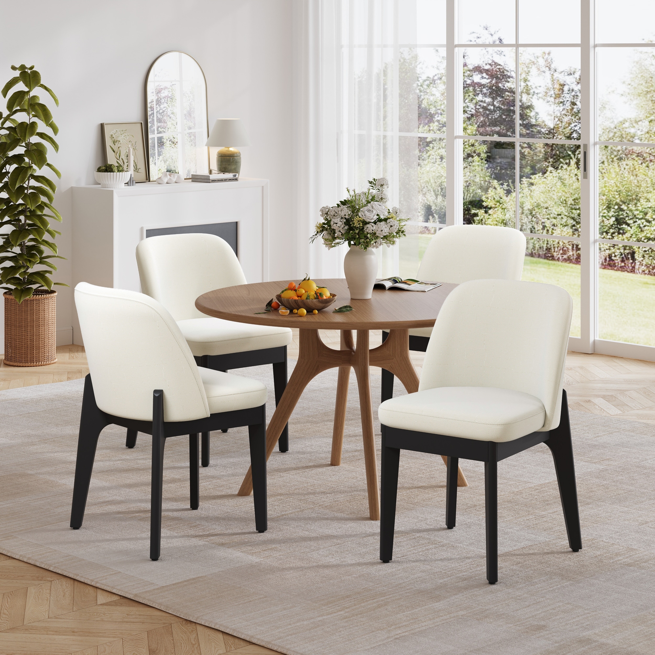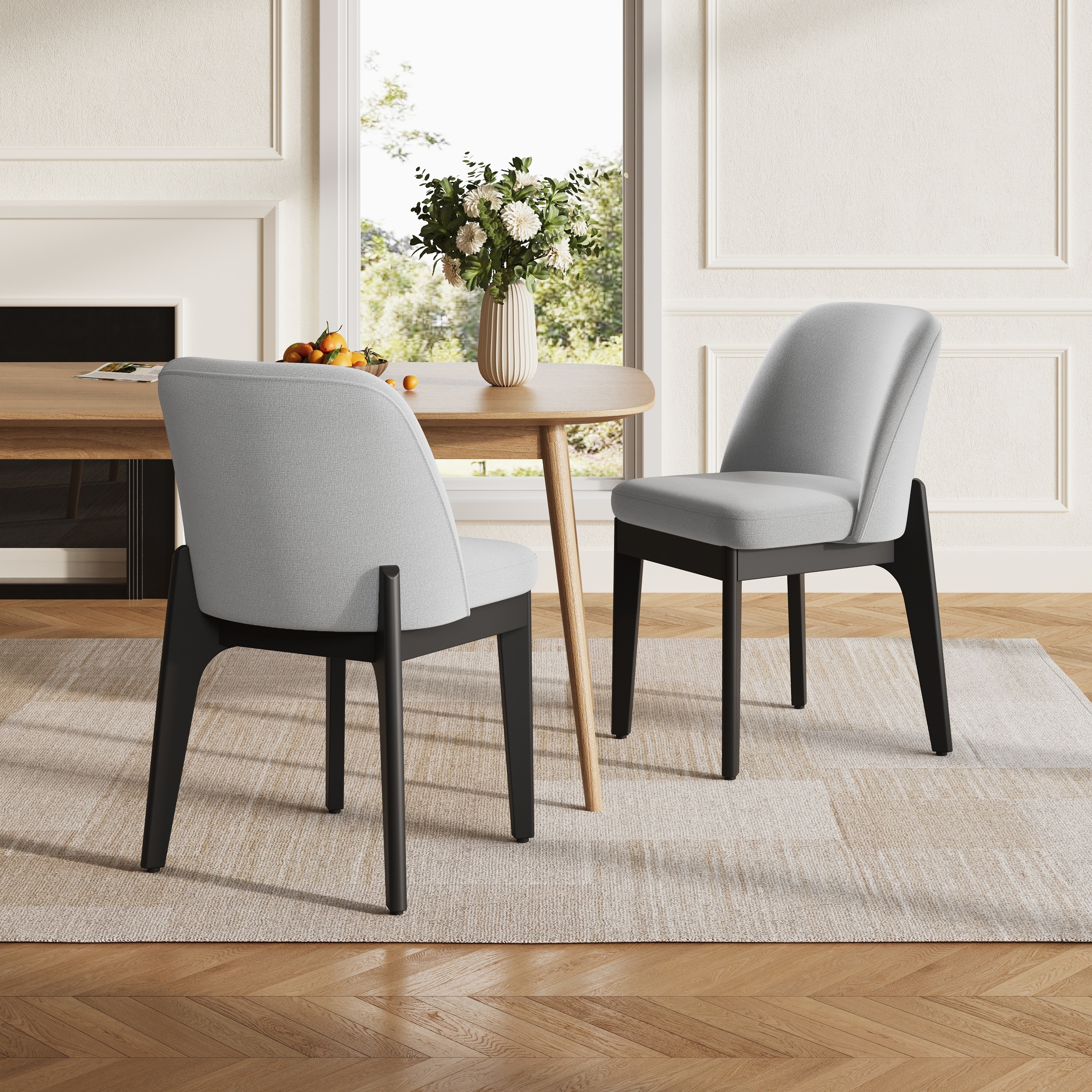 Dining Chairs with Solid Wood Frame and Ergonomic Curved Backrest