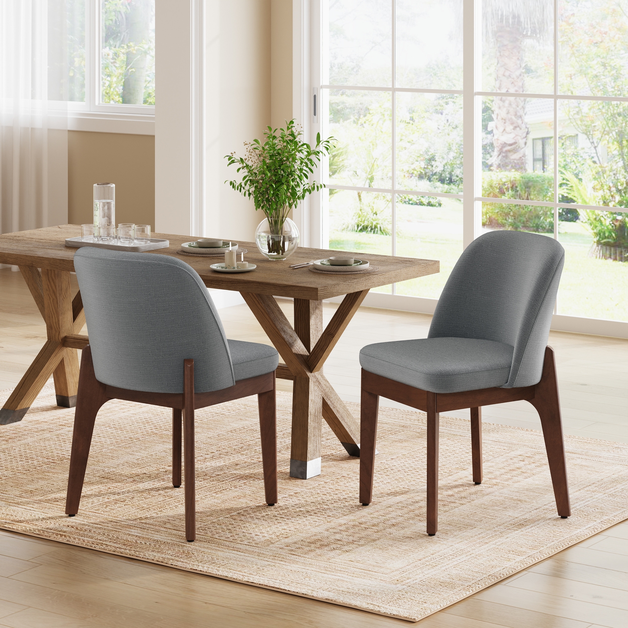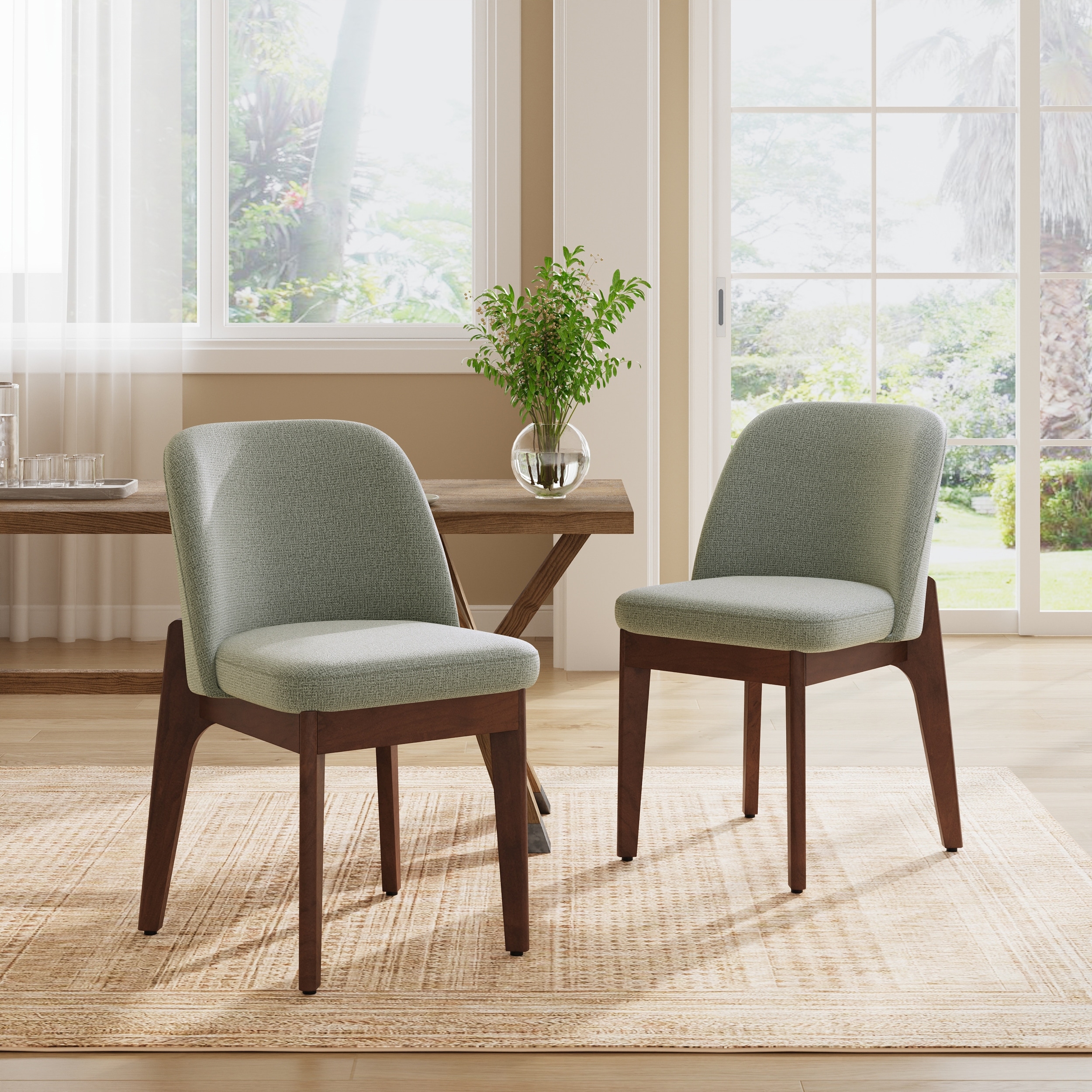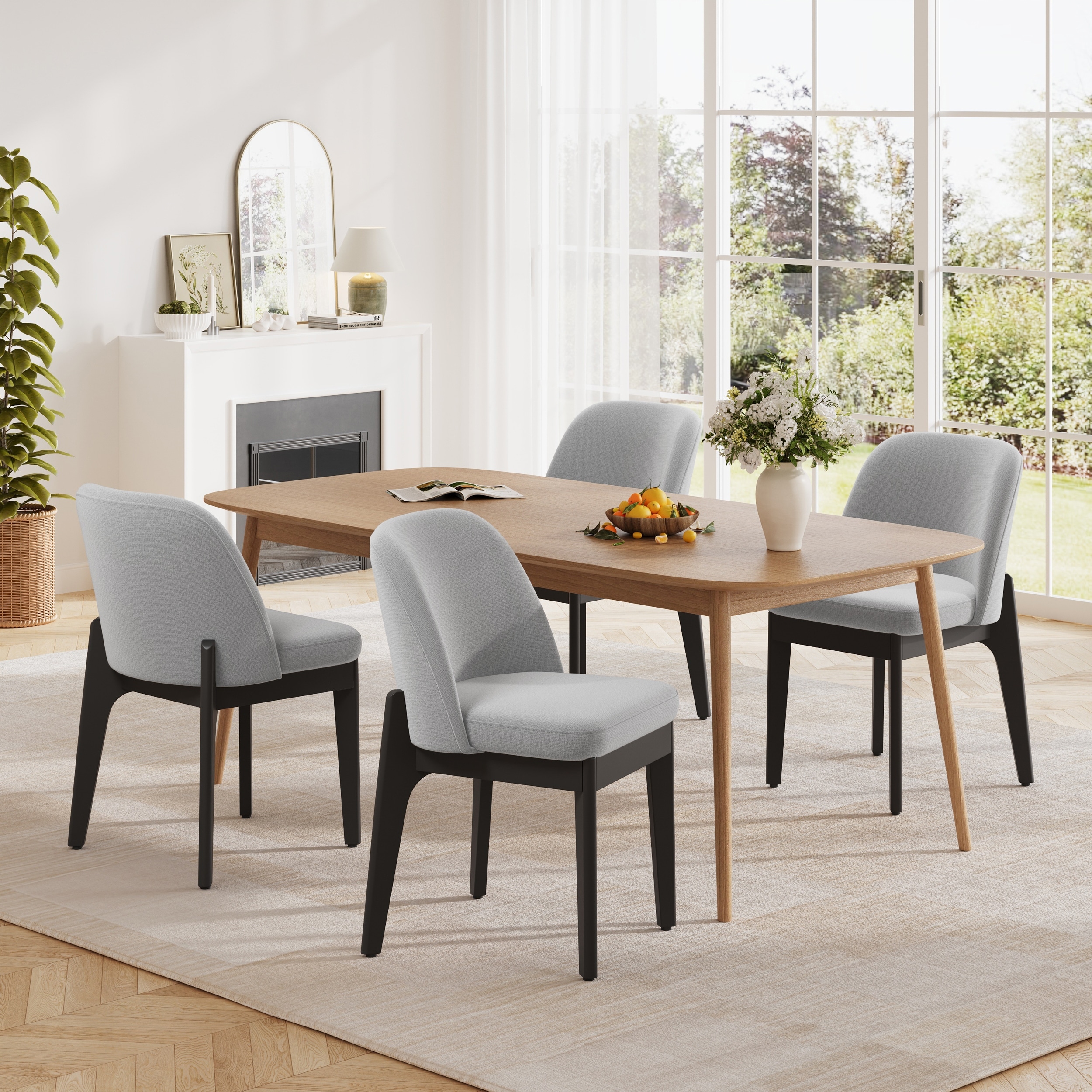 Dining Chairs with Solid Wood Frame and Ergonomic Curved Backrest